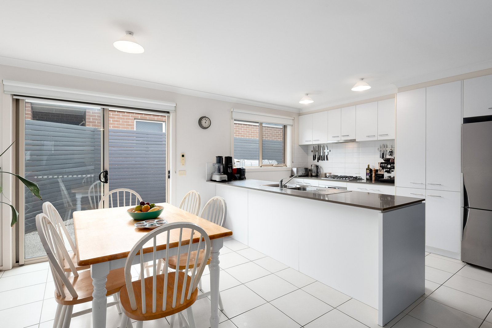 Set back from the road on a separate title, the home enjoys a private setting. Entry reveals a light-filled open-plan kitchen, dining and living area with split-system heating and cooling for year-round comfort. The stylish kitchen features stone benchtops, quality appliances including a 600mm oven, gas cooktop and dishwasher, ample bench space and generous storage provisions. From the dining area, glass sliders open out to the rear courtyard, allowing for effortless indoor–outdoor living and entertaining.