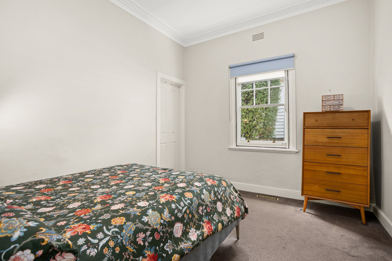Beyond its attractive weatherboard façade, the home opens to beautifully proportioned interiors with polished timber floors, high ceilings and elegant period detail throughout. A welcoming front living room provides a peaceful retreat, while the central open-plan kitchen and dining zone has been thoughtfully renovated with stone benchtops, quality appliances, excellent storage and a large island bench that naturally becomes the heart of daily living.