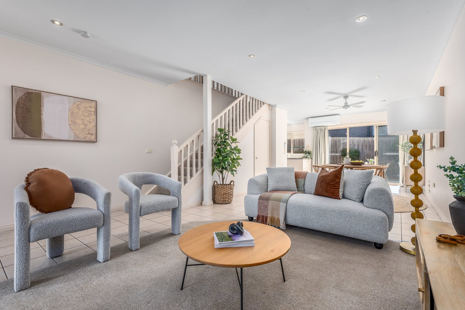 Additional features include split system heating and cooling on both levels, ceiling fans, under-stairs storage, ground floor wc, ducted vacuum system and a well-appointed laundry with storage and direct external access.