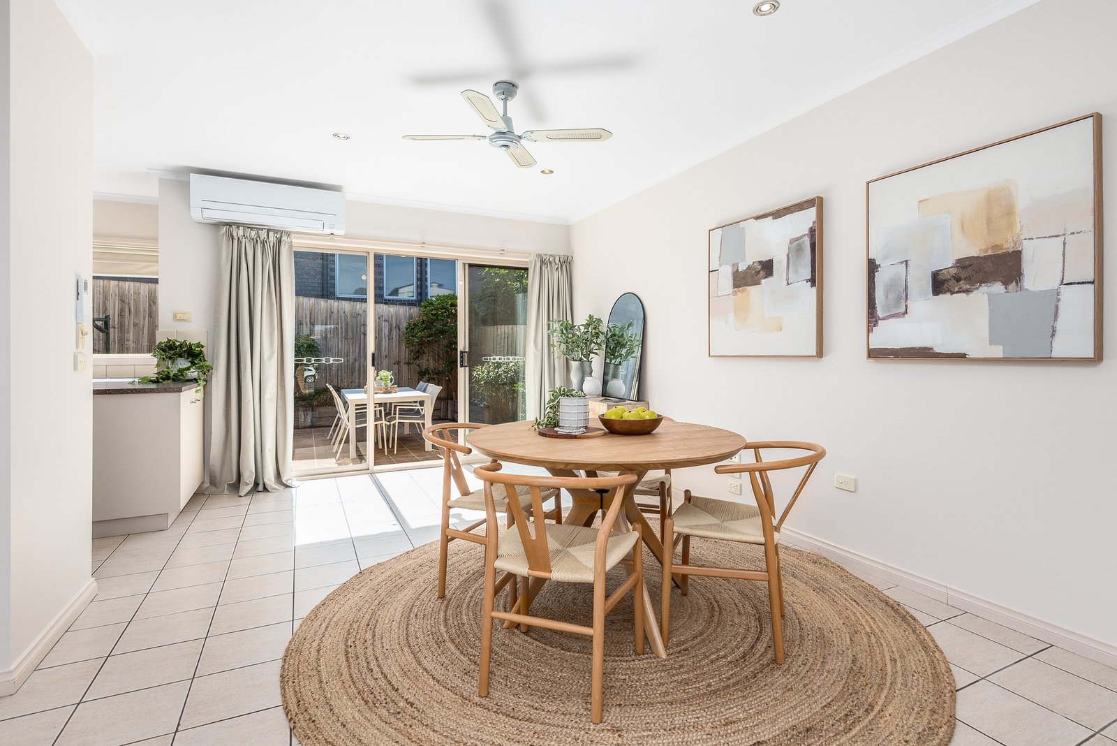 Outside, the low maintenance courtyard offers a private space to enjoy the north facing sun while relaxing or entertaining, and surrounding gardens create a tranquil atmosphere, designed for easy upkeep. The single remote garage includes direct internal access for secure and convenient access to the home.