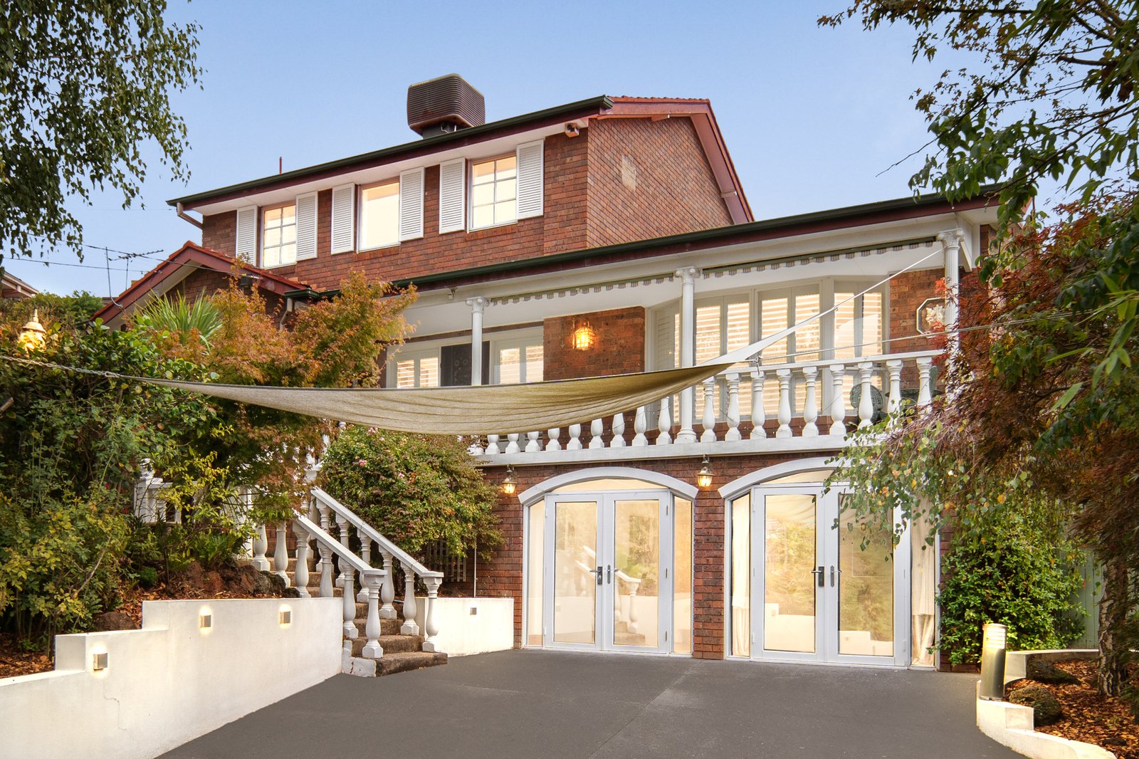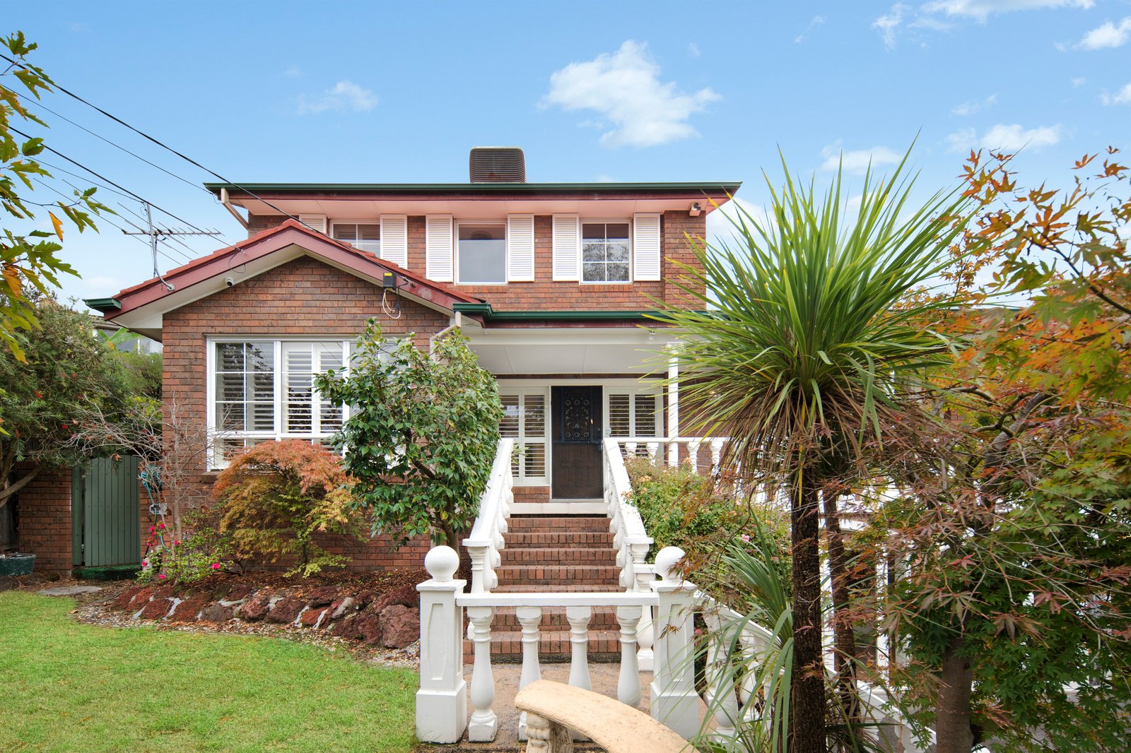 Set on a generous 681sqm block, the home showcases Californian Bungalow elements and the elevated face brick facade presents a broad asymmetrical form creating strong street presence. The home presents a wide front verandah with decorative balustrading, masonry stairway and rendered balusters. Multi-pane timber windows with shutters, expressed brick detailing, curved lower-level glazing and well-kept landscaping create a layered presentation, with added practicality from a side access gate and external water tank.