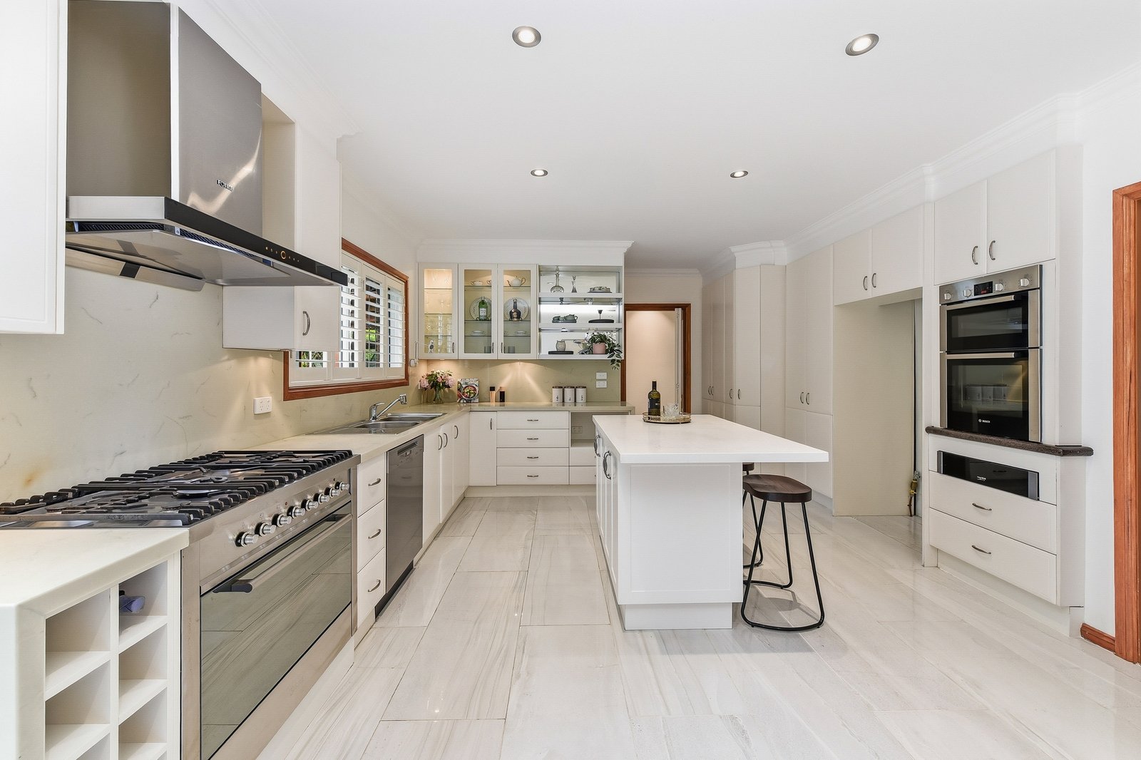• Stone kitchen with 900mm oven and dual built-in ovens