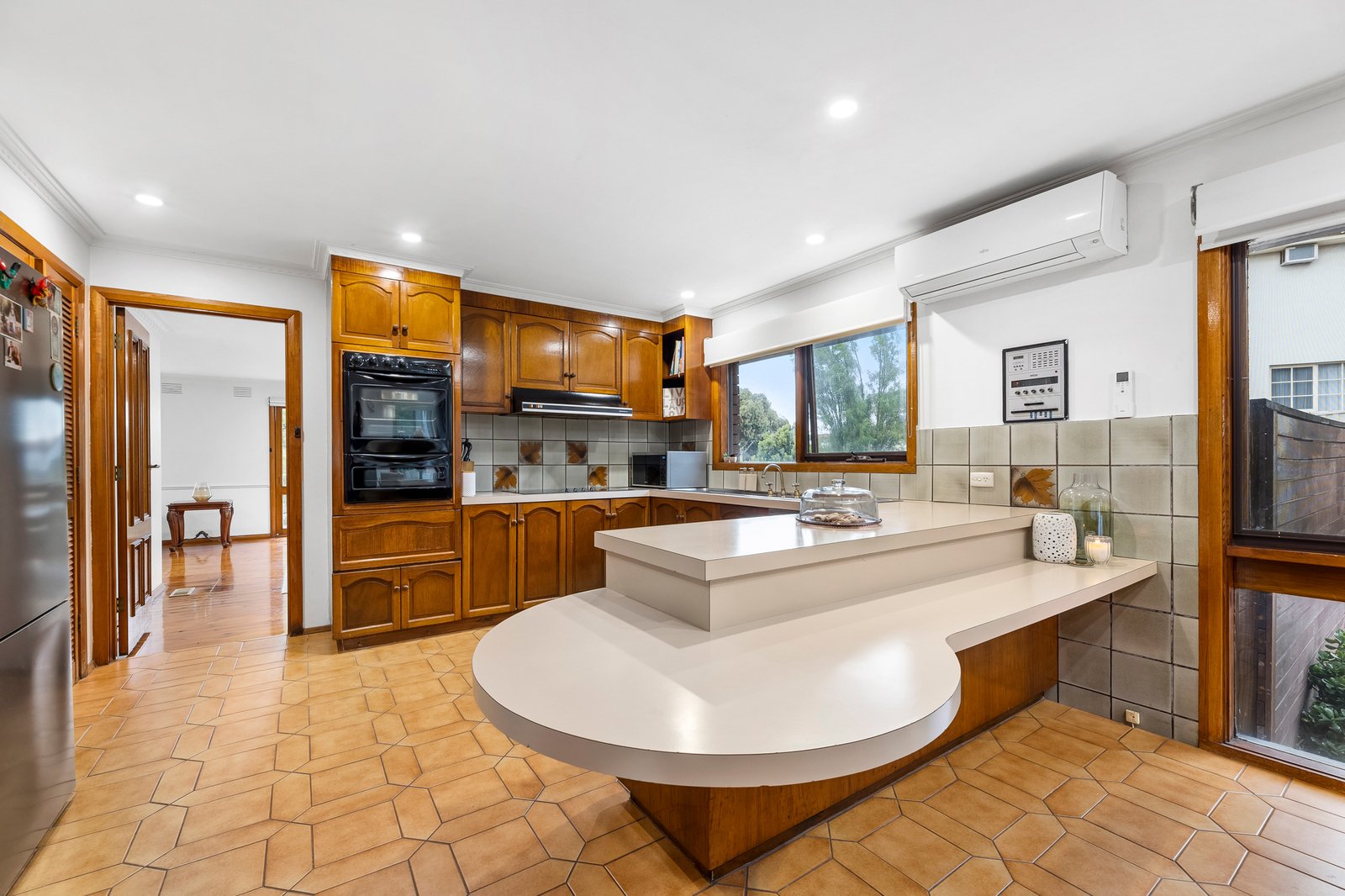 Having two bathrooms close to the bedrooms makes practical sense for young families, with stone bench upgrades, a new shower screen and separate toilet.