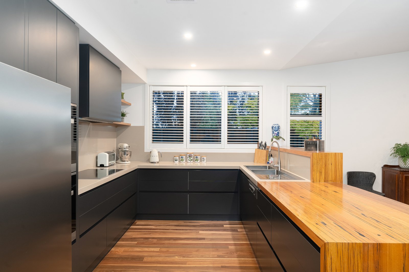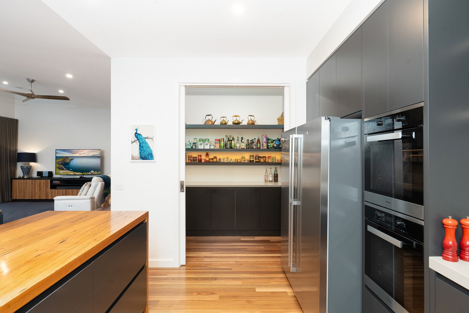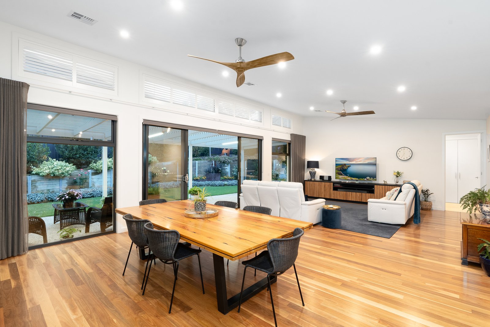 From the moment you arrive, a sense of quality is undeniable warm timber flooring, soaring ceilings, and a thoughtfully designed layout guide you through to expansive open plan living zones. The heart of the home showcases a designer kitchen complete with premium appliances, stone surfaces, and a walk-in pantry, seamlessly connecting to the light filled dining and family domain. Every detail has been thoughtfully curated to reflect quality and timeless appeal.
