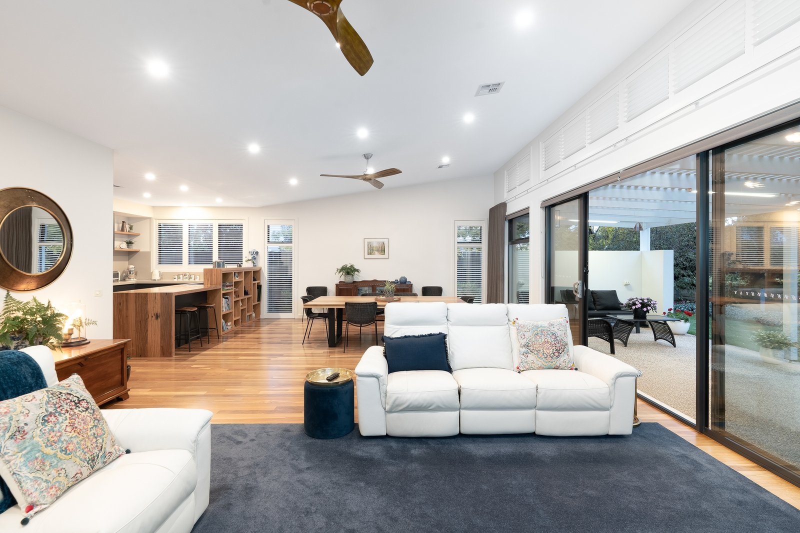 Accommodation is equally impressive, with a luxurious master suite offering a private retreat, complete with a walk-in robe and a beautifully appointed ensuite. Additional bedrooms are generously proportioned and serviced by a stylish central bathroom, providing comfort and convenience for the entire household. A separate lounge and dedicated study further enhance the home’s versatility, catering perfectly to those seeking additional living zones or work from home flexibility.