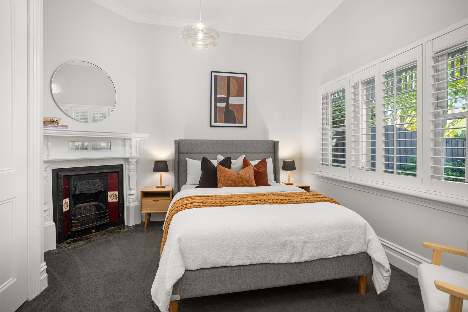 Beyond the picturesque block-fronted façade, a beautifully maintained interior showcases high ceilings, decorative detailing and dark stained Baltic pine floors that guide you through the arched hallway. The generous main bedroom features an open fireplace and built-in robes, accompanied by a second bedroom with wardrobes and a third well-proportioned double bedroom with open fire place. A stylish central bathroom and separate laundry add everyday convenience.