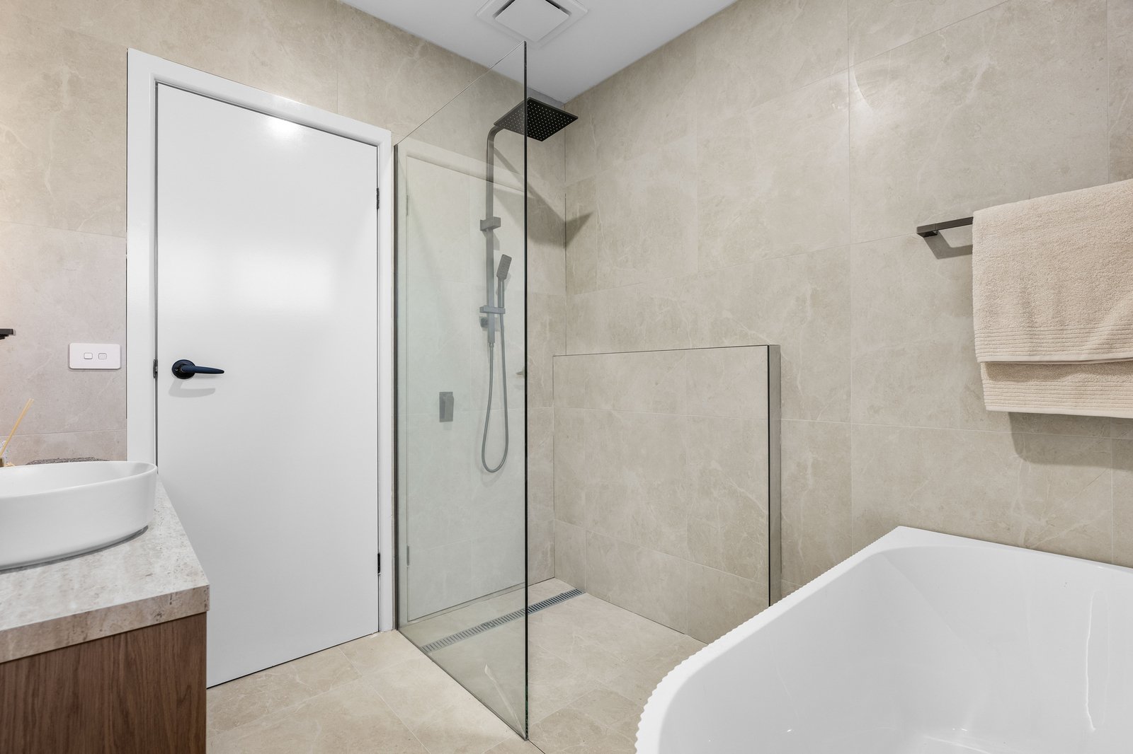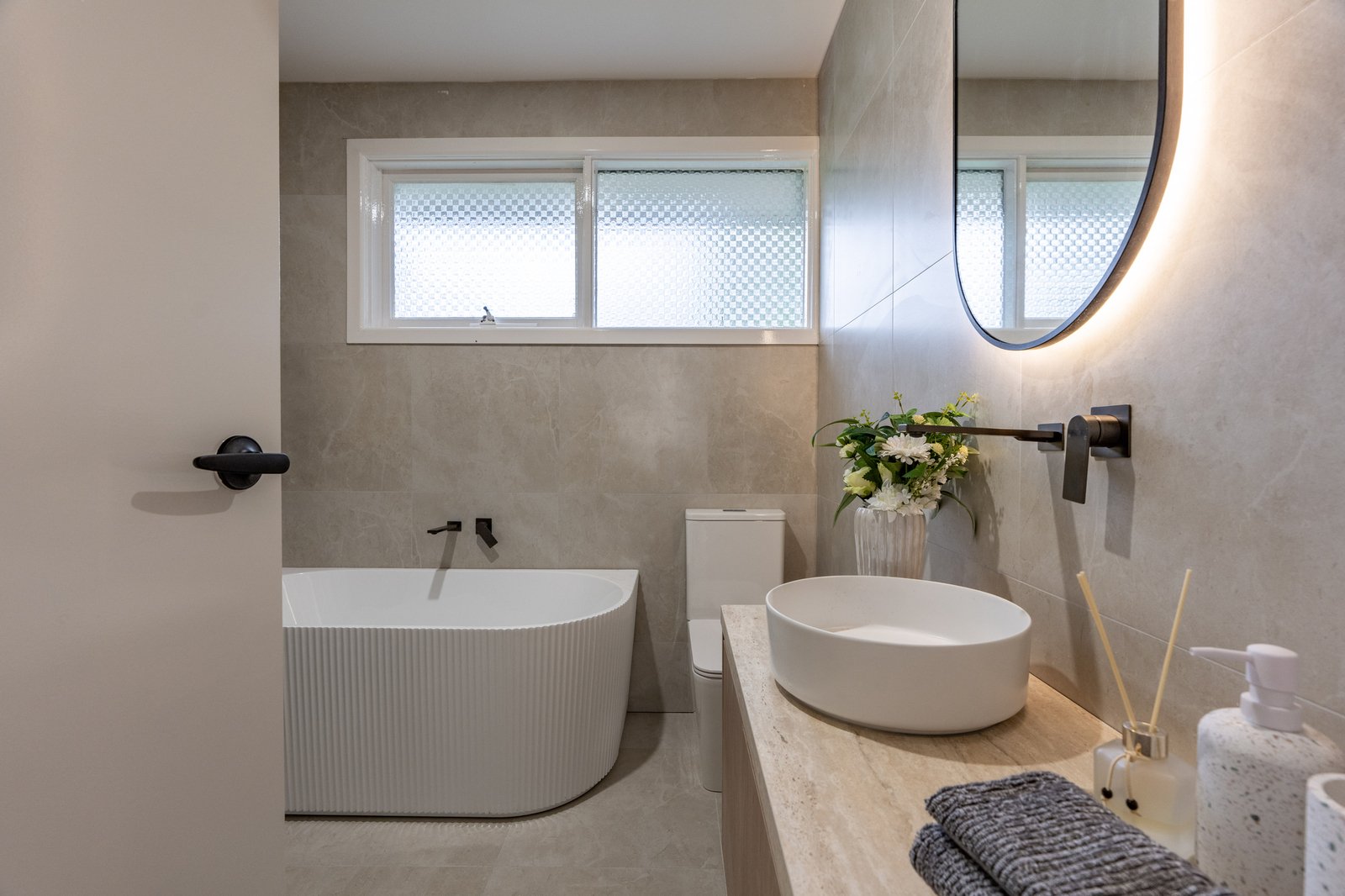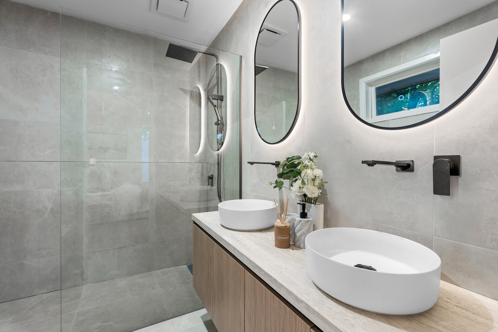 Accommodation requirements are met by four principal bedrooms with robes, a family bathroom, and a parents’ hideaway with walk-in robe and ensuite. Boasting lavish bathrooms with floor-to-ceiling tiling, LED strip lighting and frameless waterfall showers; the home features a gourmet homemaker kitchen, fabulously appointed with premium stone benchtops, Bosch appliances, a suite of new cabinetry, coffee bar, and adjoining laundry/scullery.