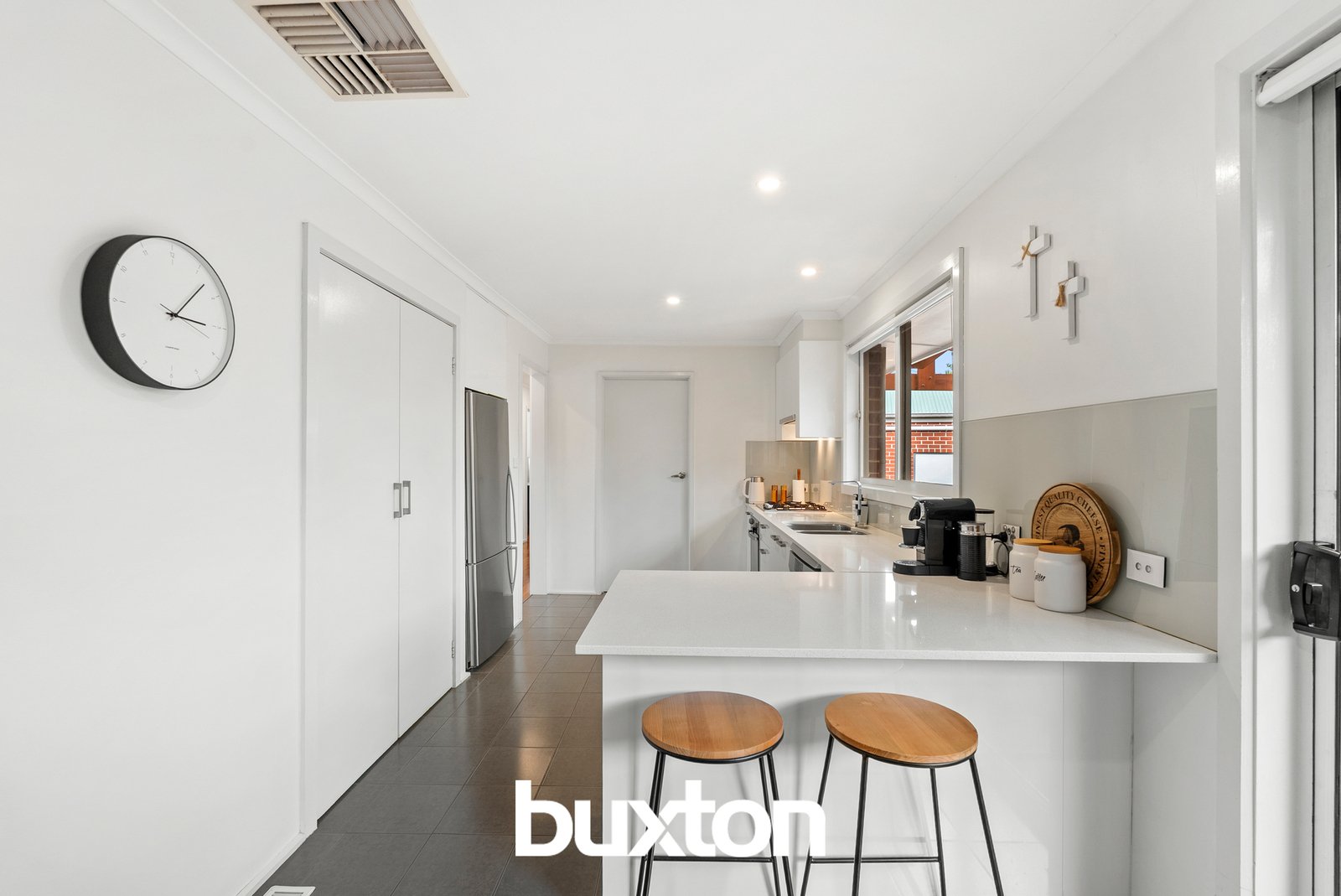 The kitchen is well-appointed with stone benchtops and quality Westinghouse appliances including gas cooking, complemented by a Baumatic dishwasher for added convenience. Clean cabinetry, a neutral palette and a practical layout make this a space thatʼs easy to enjoy, with direct access to the meals area and outdoor entertaining zone.