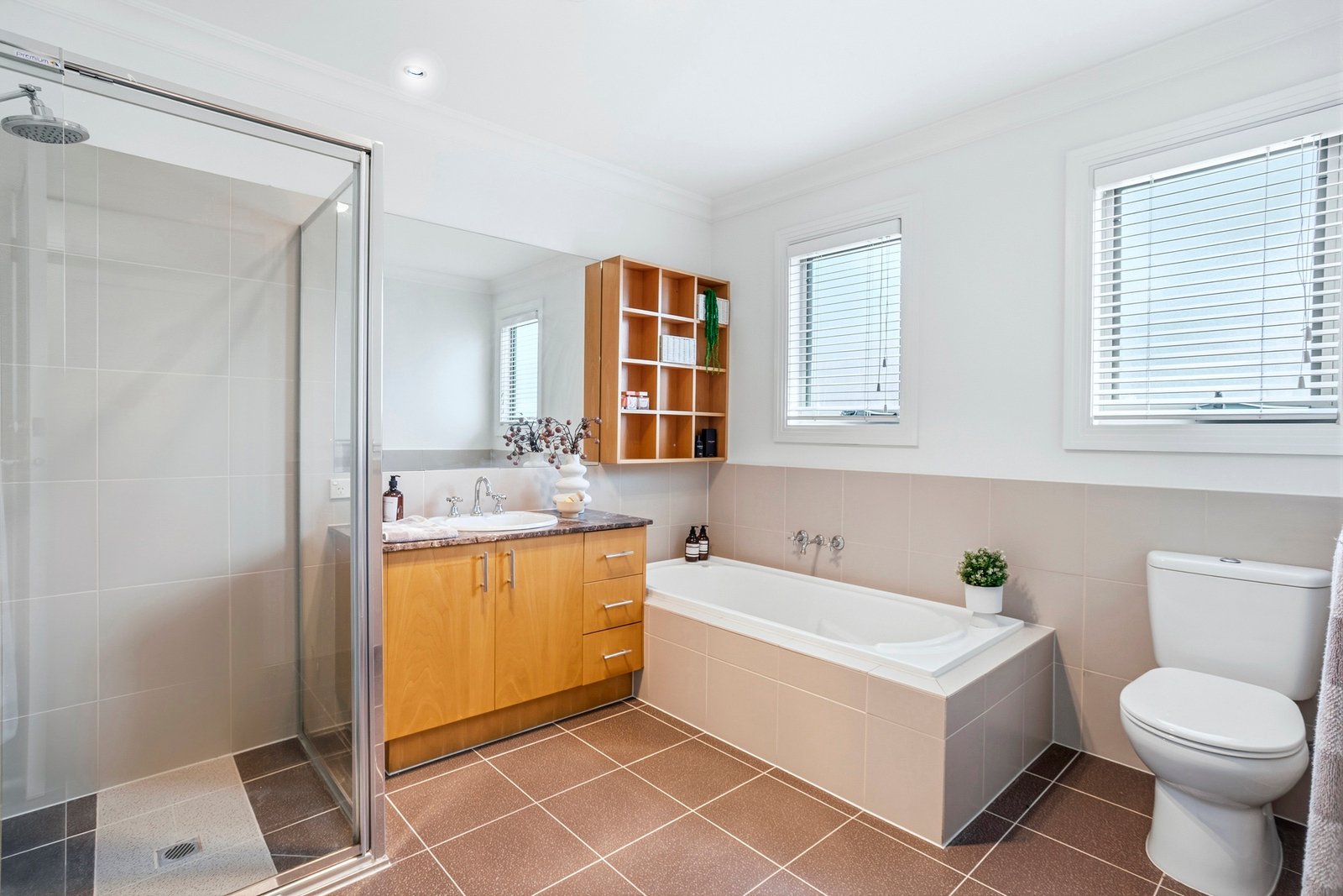 Upstairs, accommodation is thoughtfully designed for privacy and comfort. The main bedroom enjoys its own balcony, walk-in robe and ensuite, while two further bedrooms - one with a walk-in robe and the other with built-in robes - are serviced by a central bathroom complete with a bath.