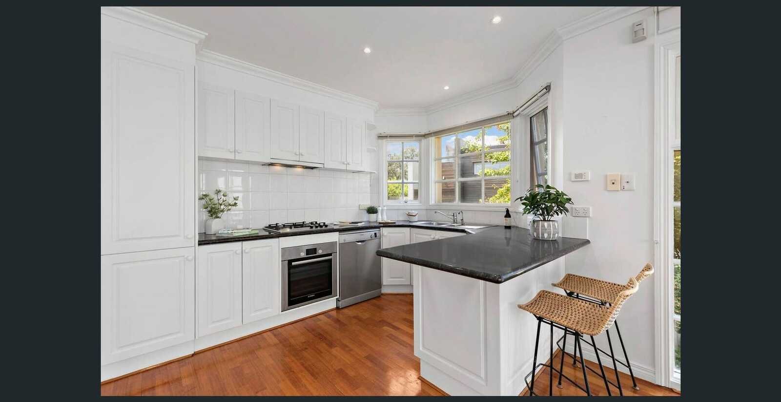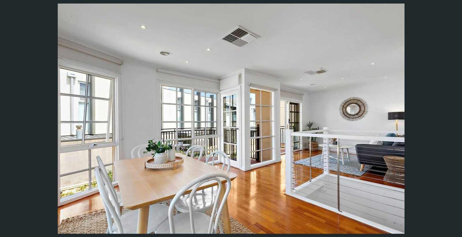 Peacefully positioned at the rear in a small boutique group of only four, this sun-filled sanctuary delivers low-maintenance family living and effortless entertaining, just footsteps to the foreshore. Introduced by a wide entrance hall, glossy timber floors flow past a sitting room spilling through glass sliders to an alfresco terrace set in private leafy gardens, before arriving at two ground floor bedrooms with built-in robes. Up the timber staircase, an open-plan dining and living zone opens to two separate balcony terraces offering serene bay glimpses. Overlooking the dining area for easy entertaining, the gourmet kitchen is beautifully appointed with granite benchtops, Bosch appliances including oven, gas cooktop and dishwasher, breakfast bar, and generous cabinetry. Positioned upstairs for privacy, the spacious master bedroom offers walk-in wardrobe and sparkling ensuite with corner spa bath. This appealing home is further enhanced by sleek bathroom with separate bath and shower, powder room, separate WC, ducted heating and cooling, concealed laundry, ample storage including under stair, ducted vacuum, and two separate auto garages. At this prized location, stroll across to the beach and Bay Trail, walk to Black Rocks restaurants, cafes, boutiques, and shops, or simply relax on the balcony and enjoy the view. Plus, close proximity to local primary schools and excellent private schools, and zoning for Beaumaris Secondary College and Mentone Girls Secondary College. Inspections will impress.
