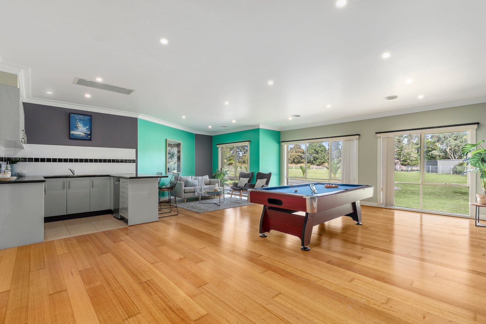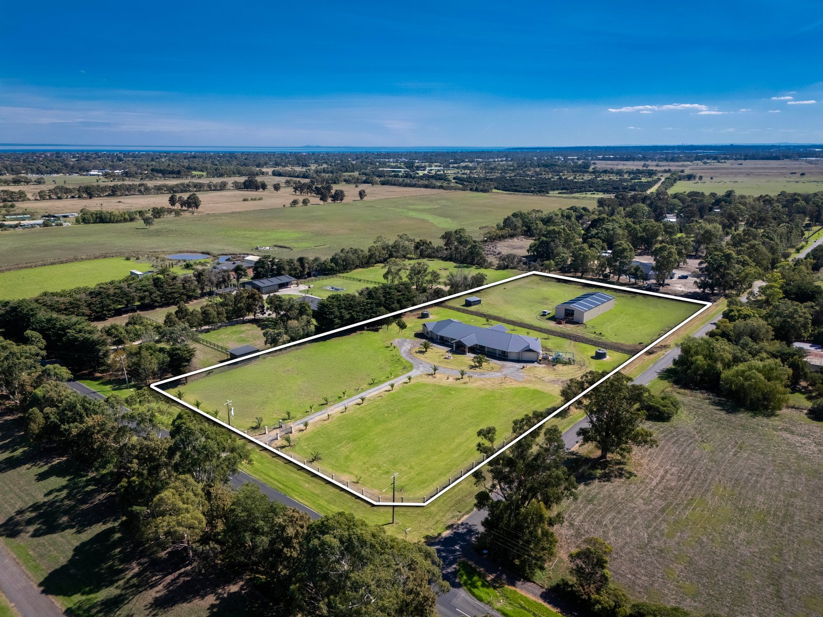 Beyond the sweeping driveway and grand entrance, this modern single-level property delivers rare scale and warmth, spanning approximately five-acres – designed for families who want room to breathe and live life at your own pace. With separate accommodation wings, six generous bedrooms (all with ensuite access) and multiple living areas – including a formal lounge, vast games room with kitchenette and large study – every generation has space to call their own. At the heart of the home, the open-plan living area and entertainer's kitchen showcases Miele appliances, granite benchtops and a fully equipped butler's pantry with second kitchen. Outside, the covered alfresco overlooks leafy tranquillity and established paddocks, awaiting your hobby farm vision. A huge 32m × 12m shed, 100,000 litres of tank water, 6kW solar system plus zoned heating and cooling complete this exceptional property. An extraordinary location where you can spend weekends at the beach and be in the city before you know it – this is the lifestyle many search for and few find. The Mornington Peninsula is a short drive away, with elite private schools including Cornish College on your doorstep and Haileybury nearby plus Patterson Lakes and Chelsea Heights shopping minutes away. Enjoy rural peace without compromise!