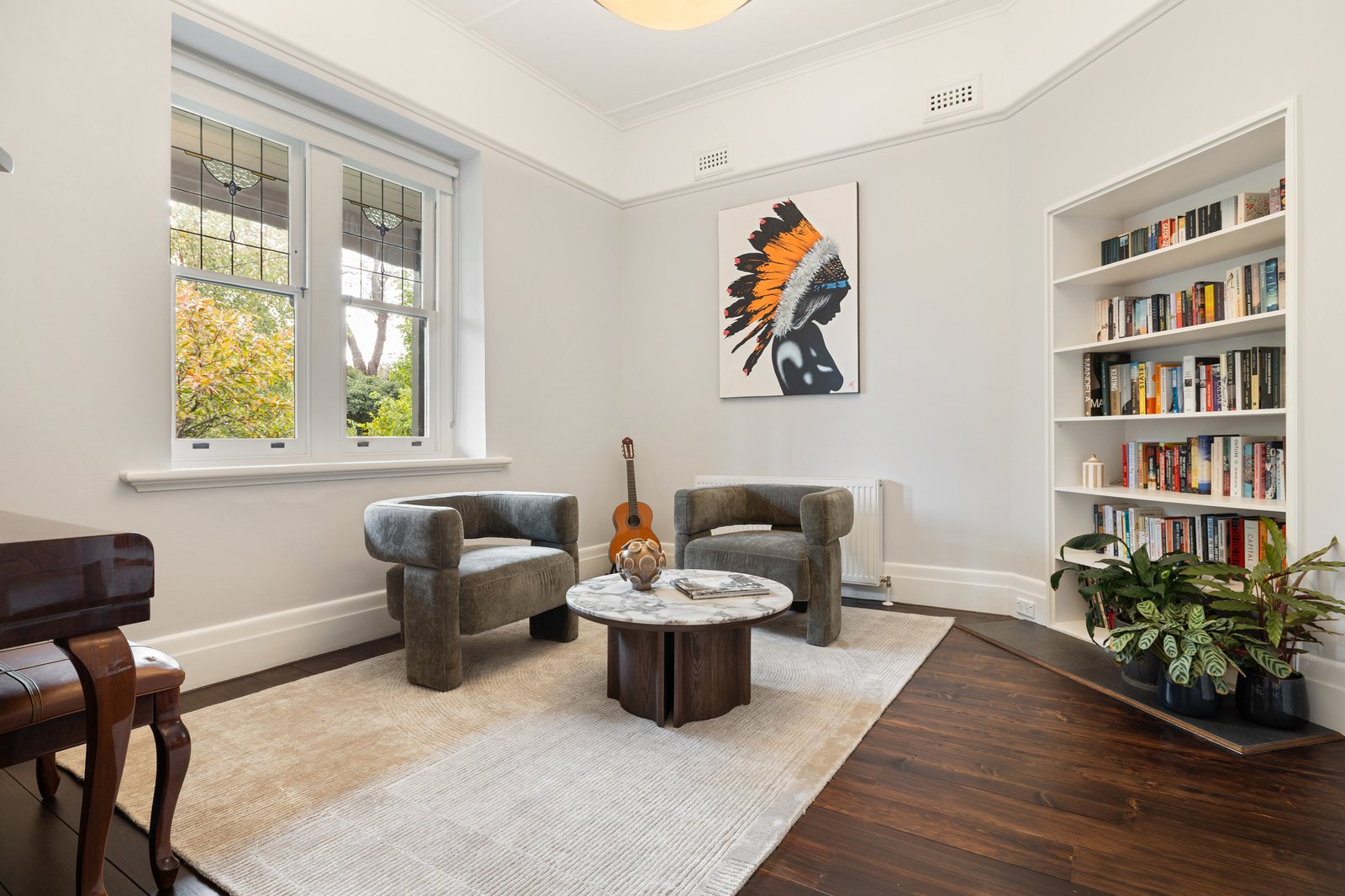 Extending from a gracious solid-brick base to offer architectural four bedroom, 2.5 bathroom accommodation with two studies and three living areas, the home offers an unparalleled combination of period grace and state-of-the-art family living. Opening in grand style with a traditional lounge catching north sun through a sweeping bay-window and a second formal room to double as media, play or work space, the home transitions into the modern day with an elite Miele appliance kitchen with butler’s pantry overlooking a towering family zone ...and a seamless flow through wide bi-fold French doors to a poolside entertainer's terrace.