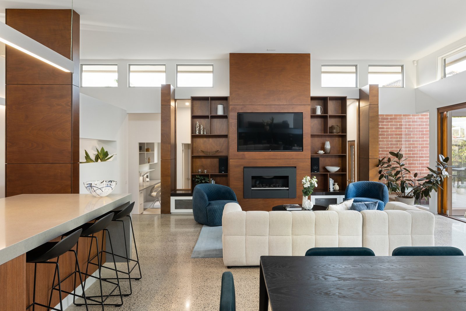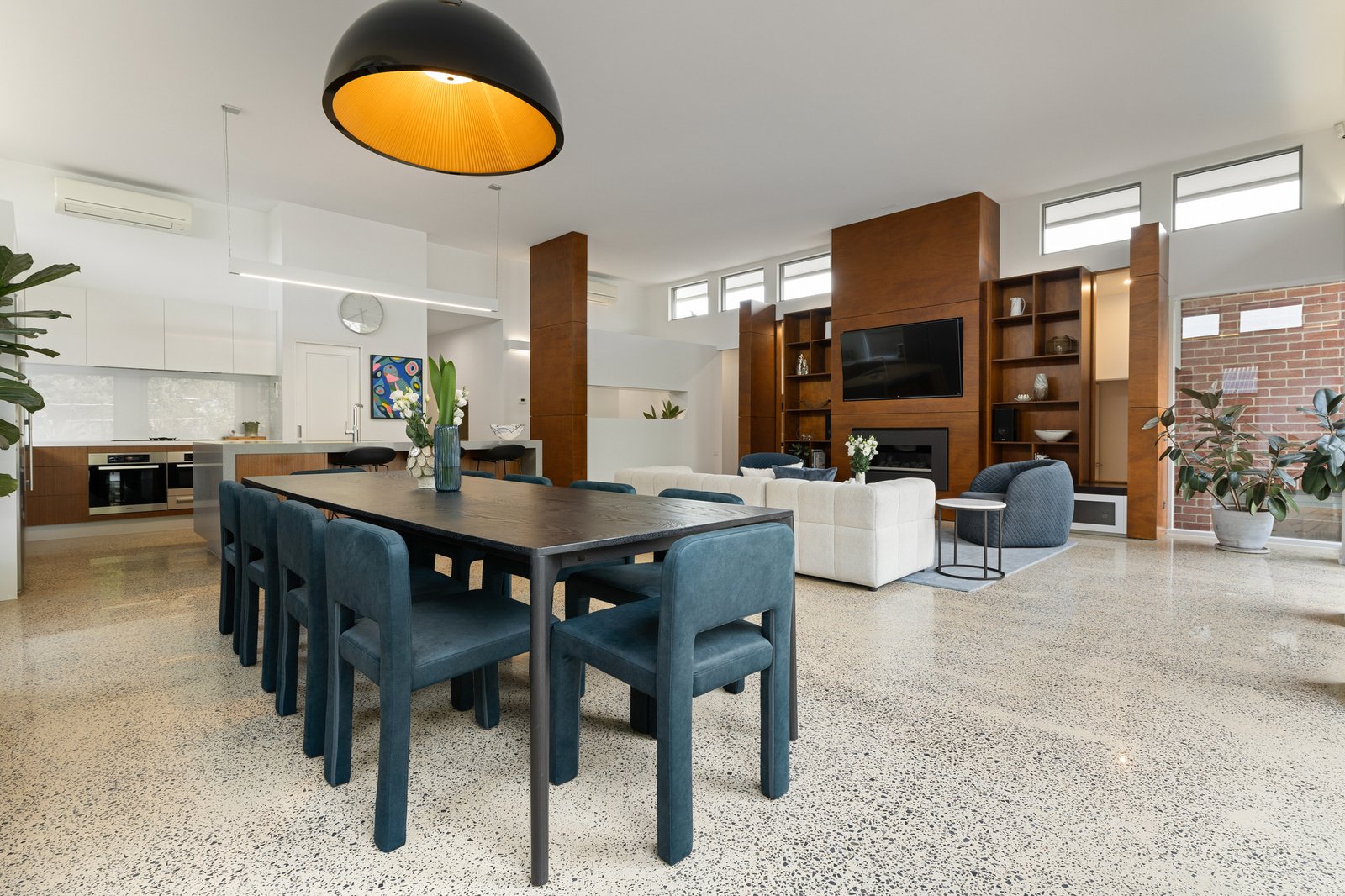 Offering family harmony with a beautiful bay-windowed master-suite (with bespoke walk-in robe and a quietly luxurious ensuite), this architectural design zones a dedicated kids' wing (comprising robe-fitted bedrooms, a multi-workstation study and a similarly luxe family bathroom) quietly to the rear. Appointed to a demanding architectural specification with heated polished-concrete floors, the latest wool loop-pile carpet and streamlined stone benchtops, this finely-crafted home features bespoke joinery including home-office fit-outs and custom timber media-cabinetry around one of two glowing gas fireplaces