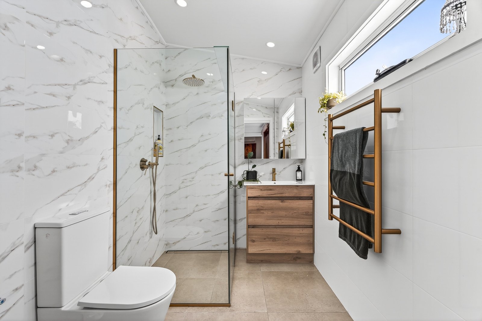 Up-to-the-minute with prestige new appliances for the stone-finished family kitchen, this centrally-heated and reverse-cycle air-conditioned home features heated towel-rails for both bathrooms, great storage including built-in robes, and a large vintage linen-press. Even the car accommodation is optioned up - with a secure garage plus access to parking in front.