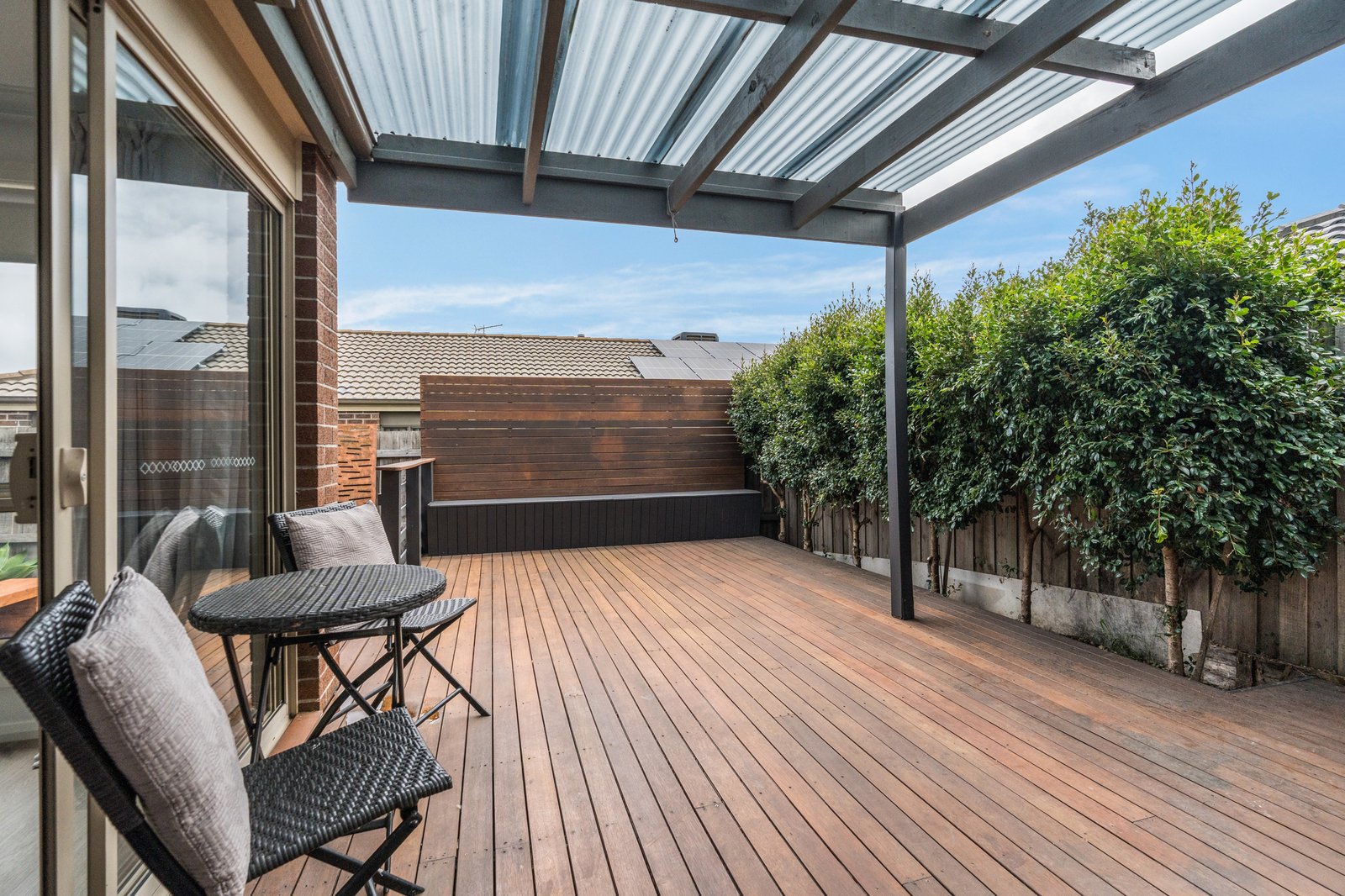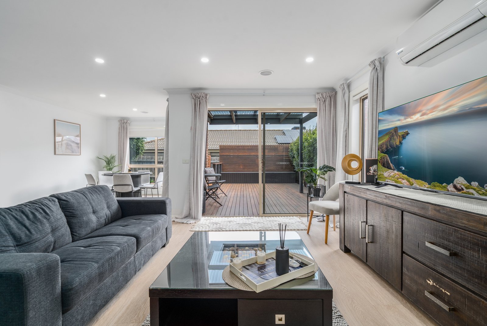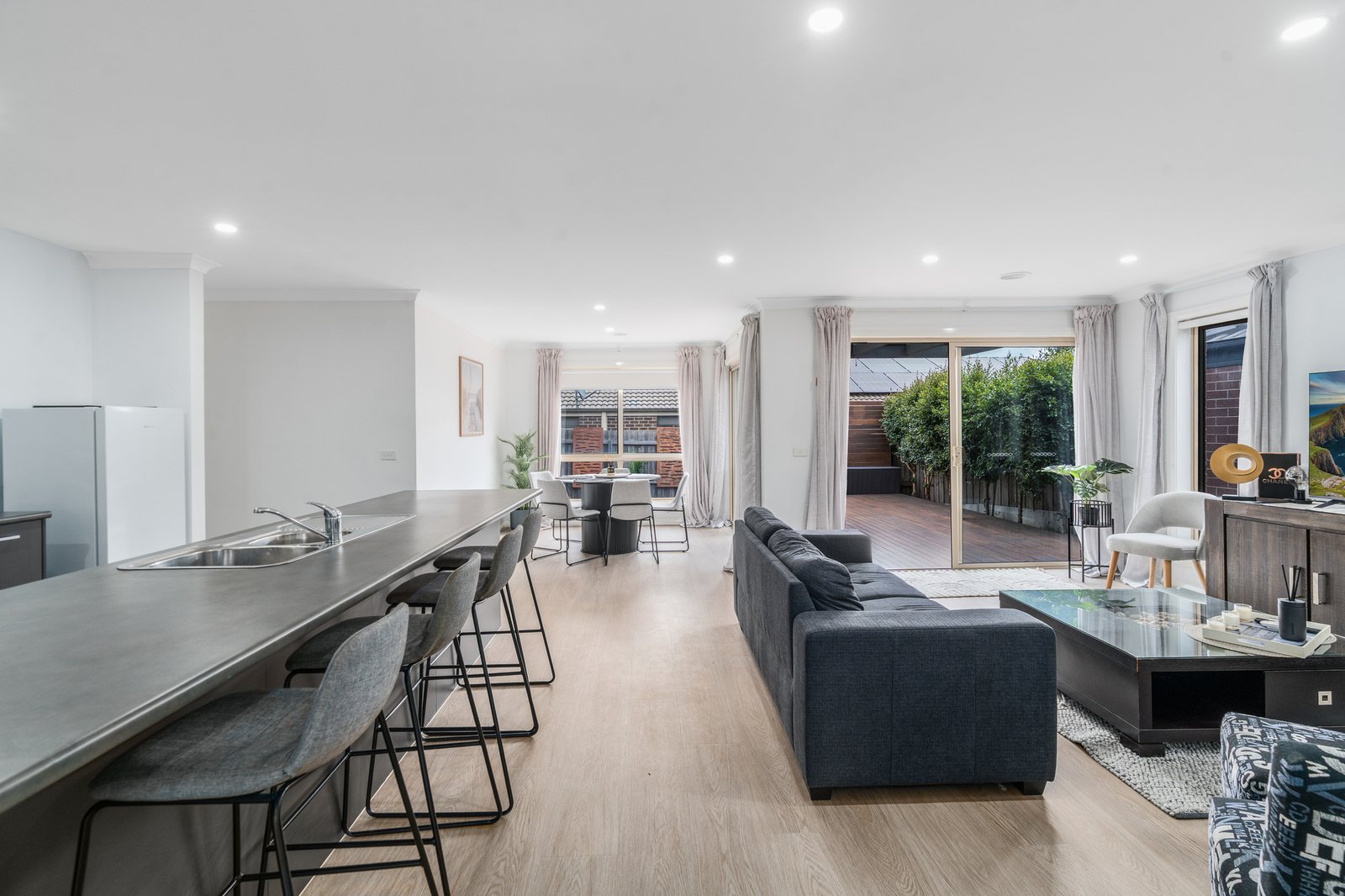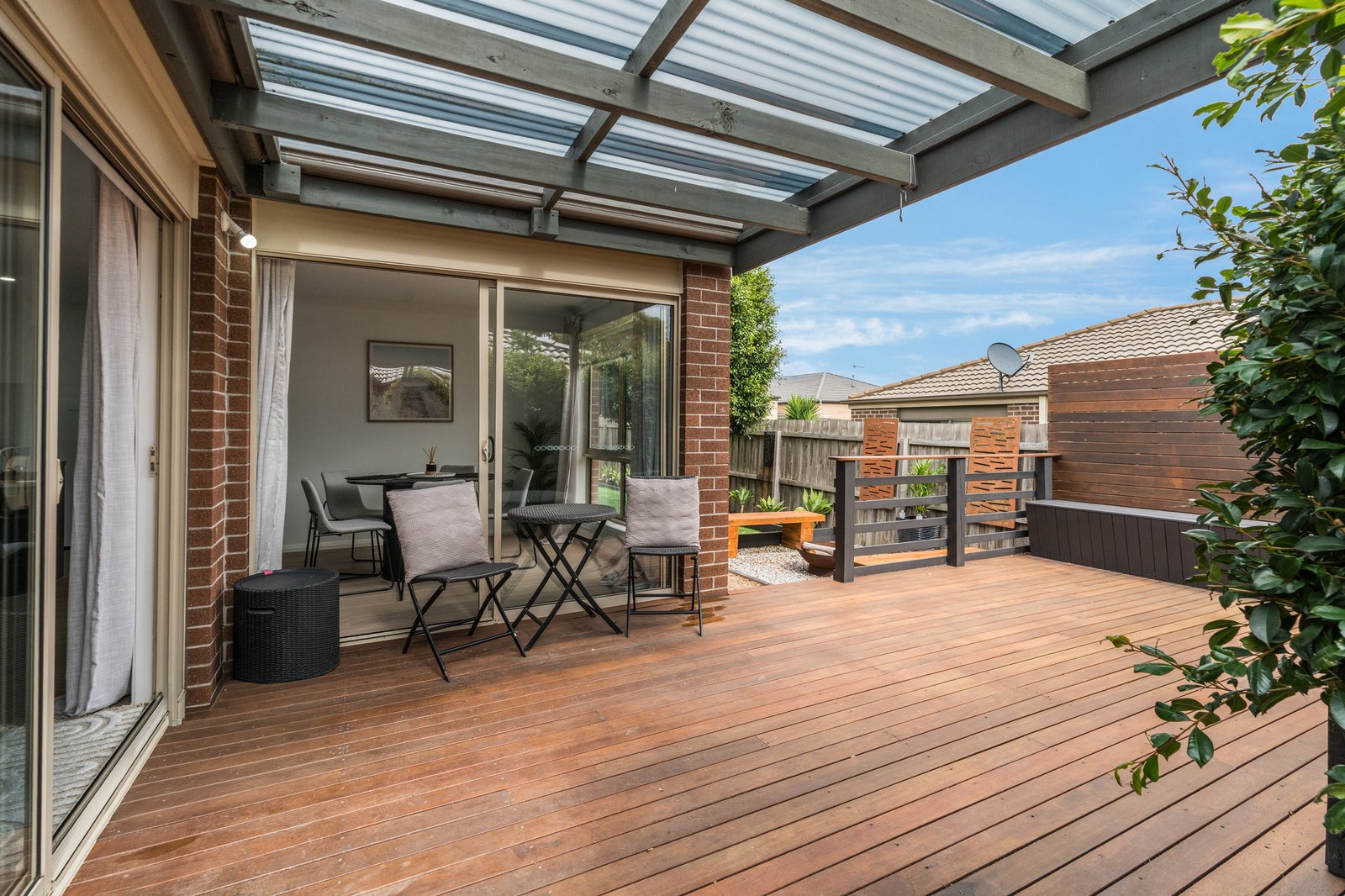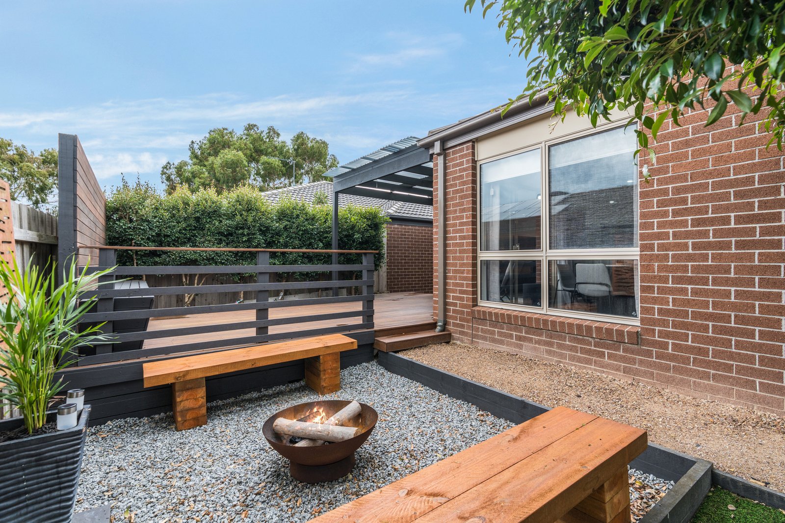 Step outside and you’ll immediately appreciate the thoughtfully designed, fully landscaped gardens where there’s nothing left to do but relax and enjoy. With artificial turf eliminating the need for mowing, a stunning decked entertaining area, undercover alfresco, built-in seating, and even a dedicated fire pit zone, this is an outdoor haven designed for year-round enjoyment and entertaining with family and friends.