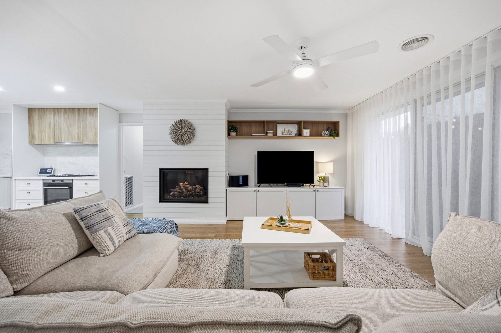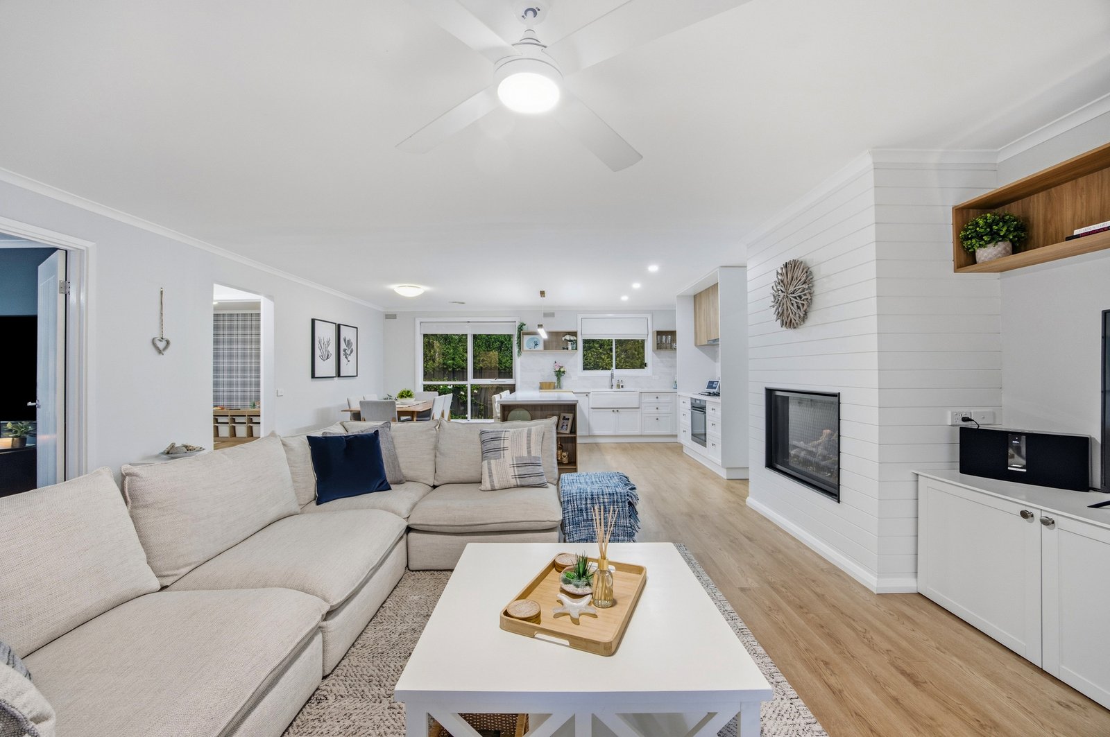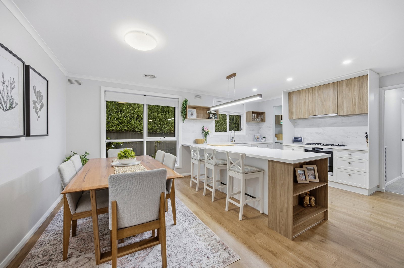Step inside to discover a completely transformed interior, where quality finishes and thoughtful design are evident throughout. The home offers multiple living zones, including a dedicated theatre room and an inviting open plan kitchen, meals, and living area, complete with a cosy gas log fire. The brand-new kitchen is a true centrepiece, featuring stone benchtops, a integrated dishwasher, gas cooktop, separate oven, and a fully equipped butler’s pantry perfect for entertaining or growing families.