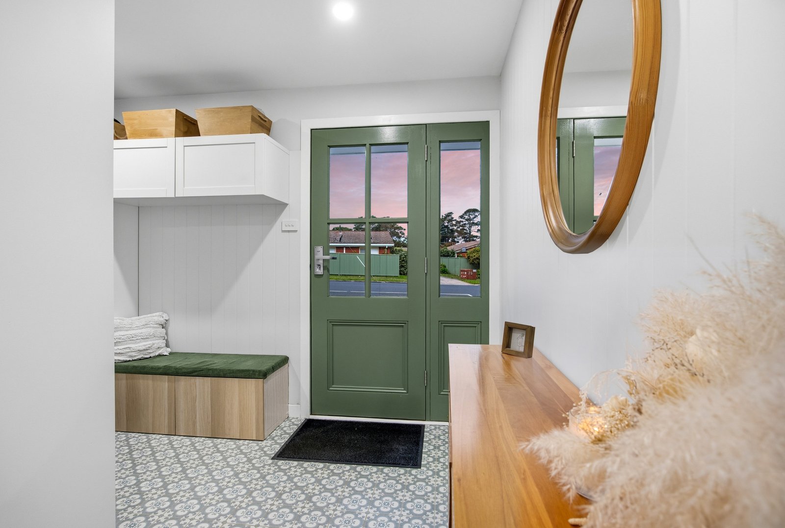Comfort is assured year-round with gas central heating, new R6 insulation, double glazed windows, and stylish new floor coverings throughout. A functional mud room upon entry, complete with built-in cupboards and a bench seat, adds practicality, while the large laundry boasts overhead cabinetry and an expansive walk-in linen cupboard.