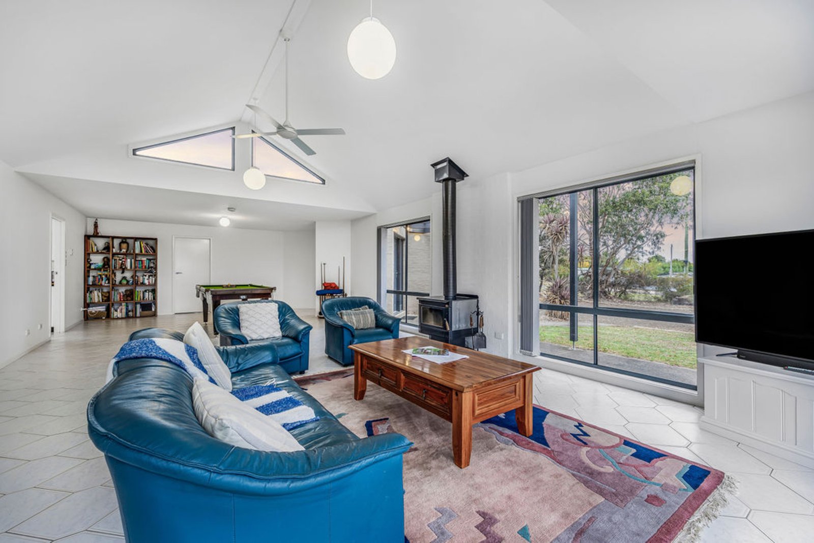 At the heart of the home is a spacious open plan kitchen, dining, and living area, designed for everyday living and entertaining. The large kitchen is well-equipped with a 900mm gas cooktop and gas oven, along with a 600mm oven, providing ample space for those who love to cook. A second living area positioned off the master bedroom offers flexibility as a parents’ retreat, lounge, or home office. Comfort is assured year-round with wood heating and a central split system.