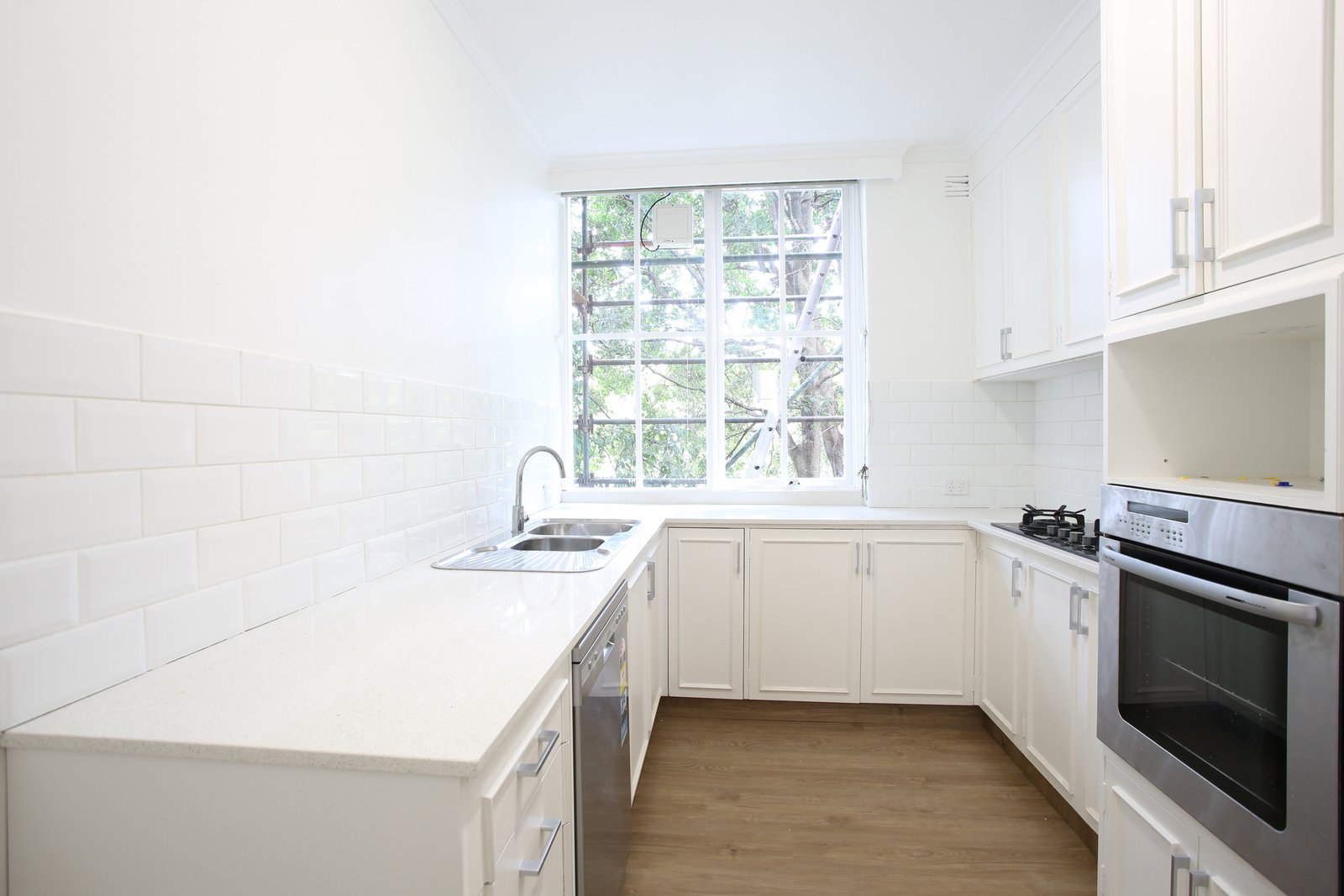 Filled with natural light, the property features a thoughtfully designed layout with spacious living and dining zones and floorboards throughout, complemented by a sleek separate modern kitchen, two generous bedrooms, built-in storage and master with ensuite. Main bathroom with bathtub.