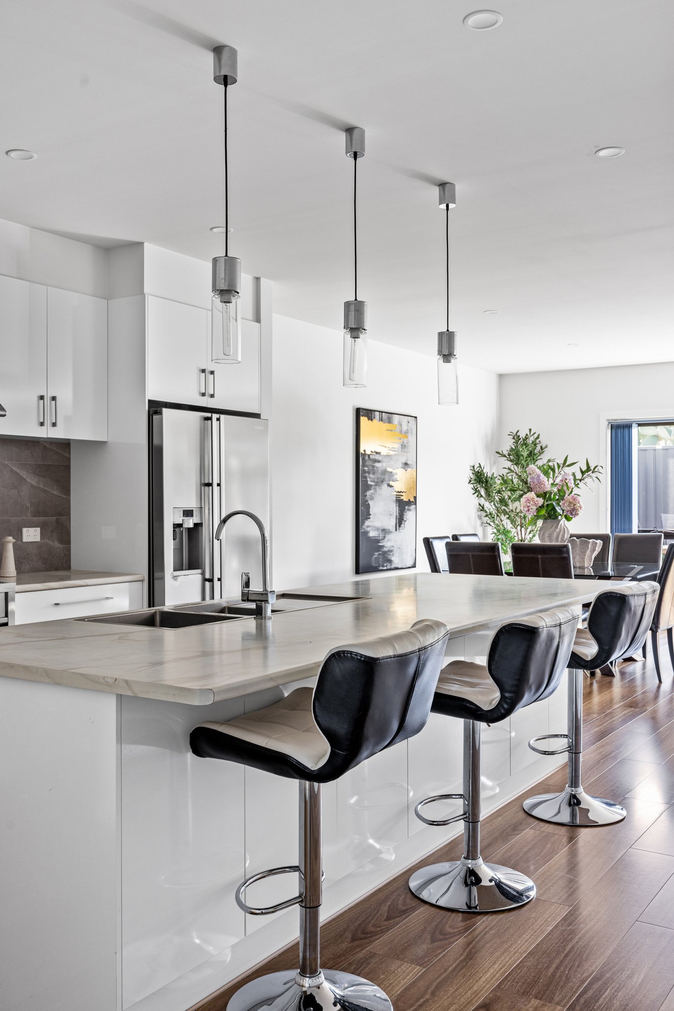 Step outside to the decked alfresco, an exceptional space for refined entertaining, whether gathering with family and friends, hosting weekend BBQs, enjoying a quiet morning coffee or simply unwinding in the fresh air. Additional features include a laundry with outdoor access, a decked side yard, refrigerated cooling and electric heating, and a remote controlled double garage for secure parking.