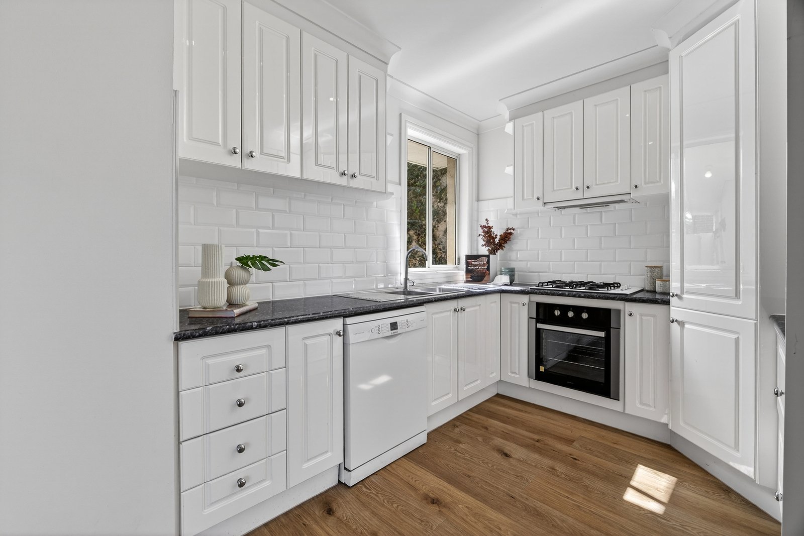 Classic by design with a gas-appointed kitchen with Bosch dishwasher, this high-quality, low-maintenance home has all the practicalities including ducted heating plus reverse-cycle air-conditioning, and hard-wearing wideboard-look floors plus plush carpets. There’s even an extra ‘secret’ in a discreet ‘hidden’ laundry area. Lawn-free and carefree with a lushly landscaped backyard including an entertaining area sheltered by a beautiful Jacaranda tree, there's potential for all-weather entertaining in dual duty auto-garaging plus easy additional driveway parking.