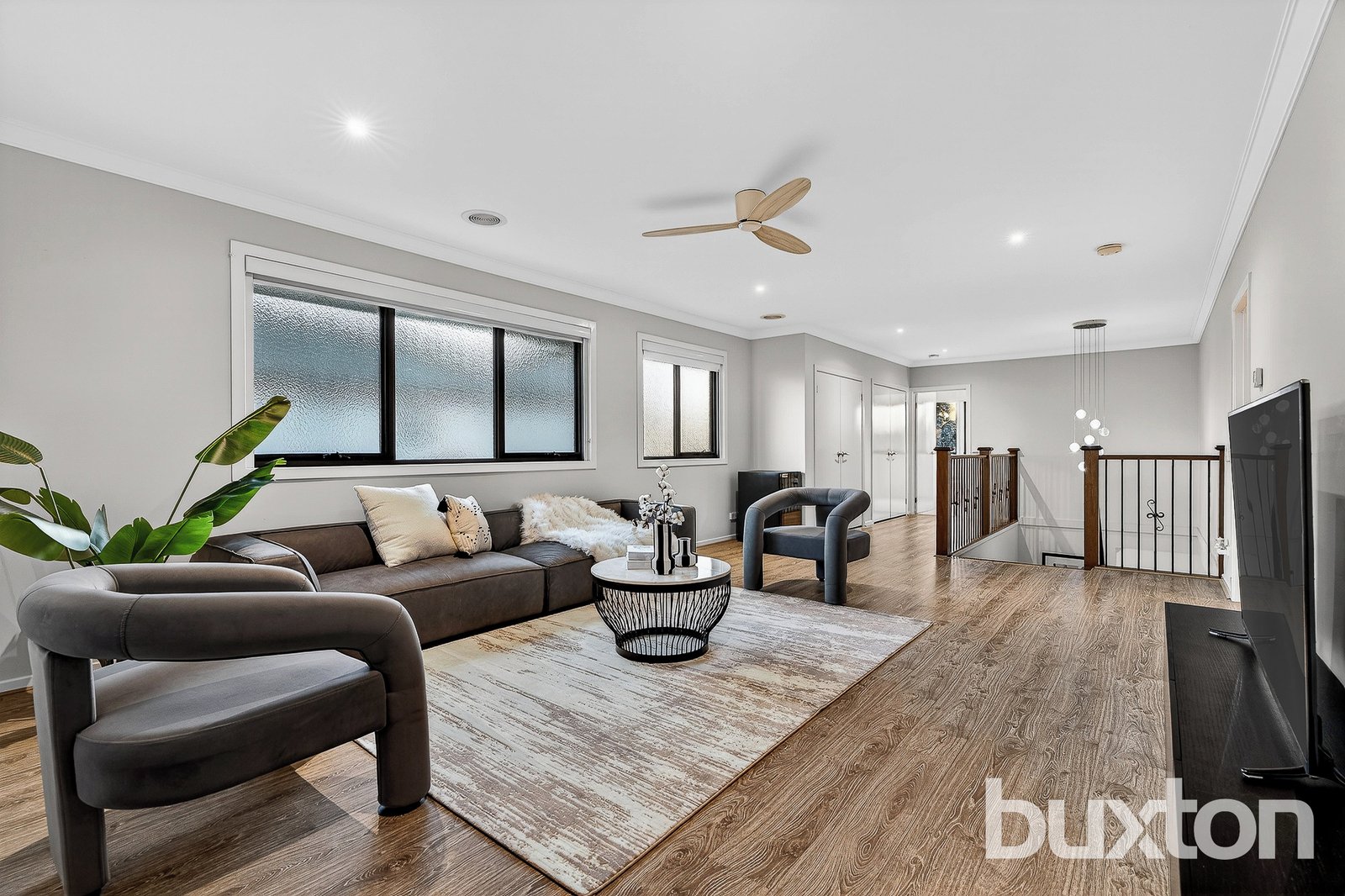 Upstairs, the luxurious main suite features a walk-in robe and a spa ensuite. The remaining bedrooms each include their own private ensuite and robe storage, while a spacious retreat creates an additional living zone for relaxation or family time.