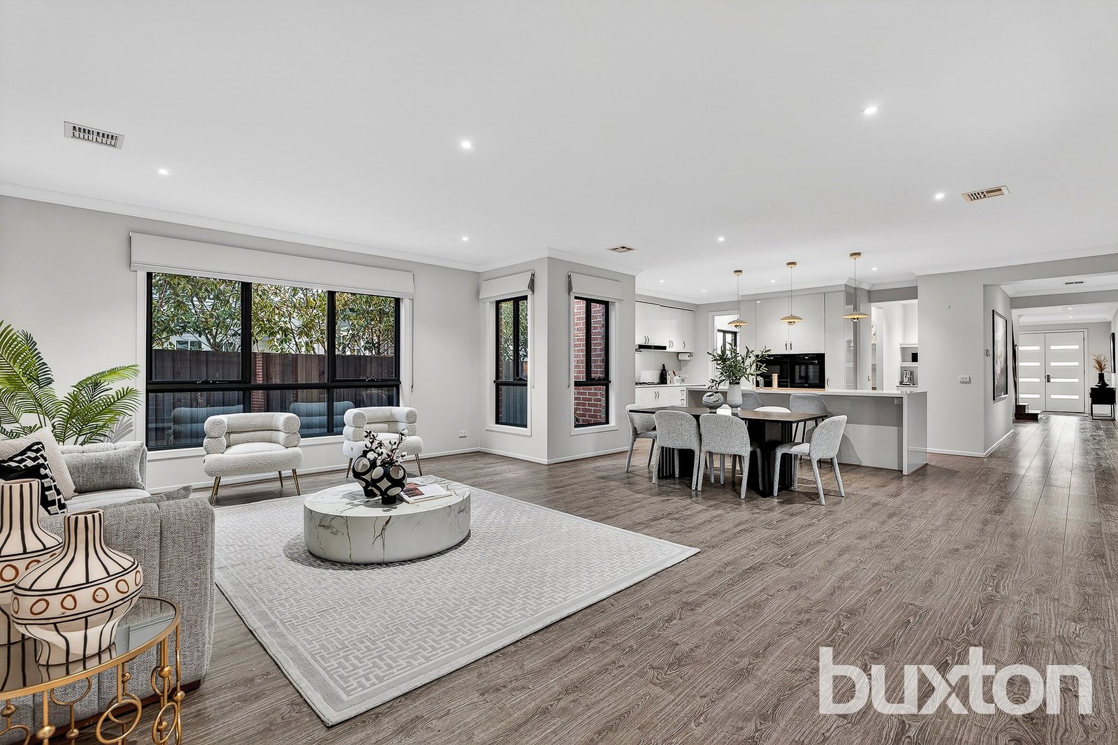 The ground floor emphasises scale and versatility. A formal living room and dining area lead...