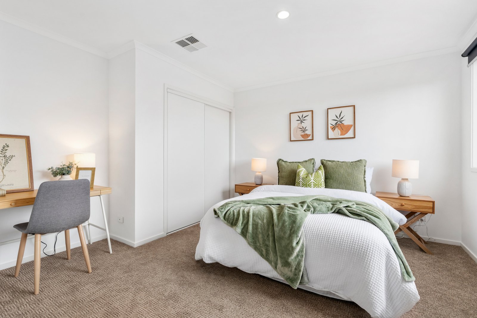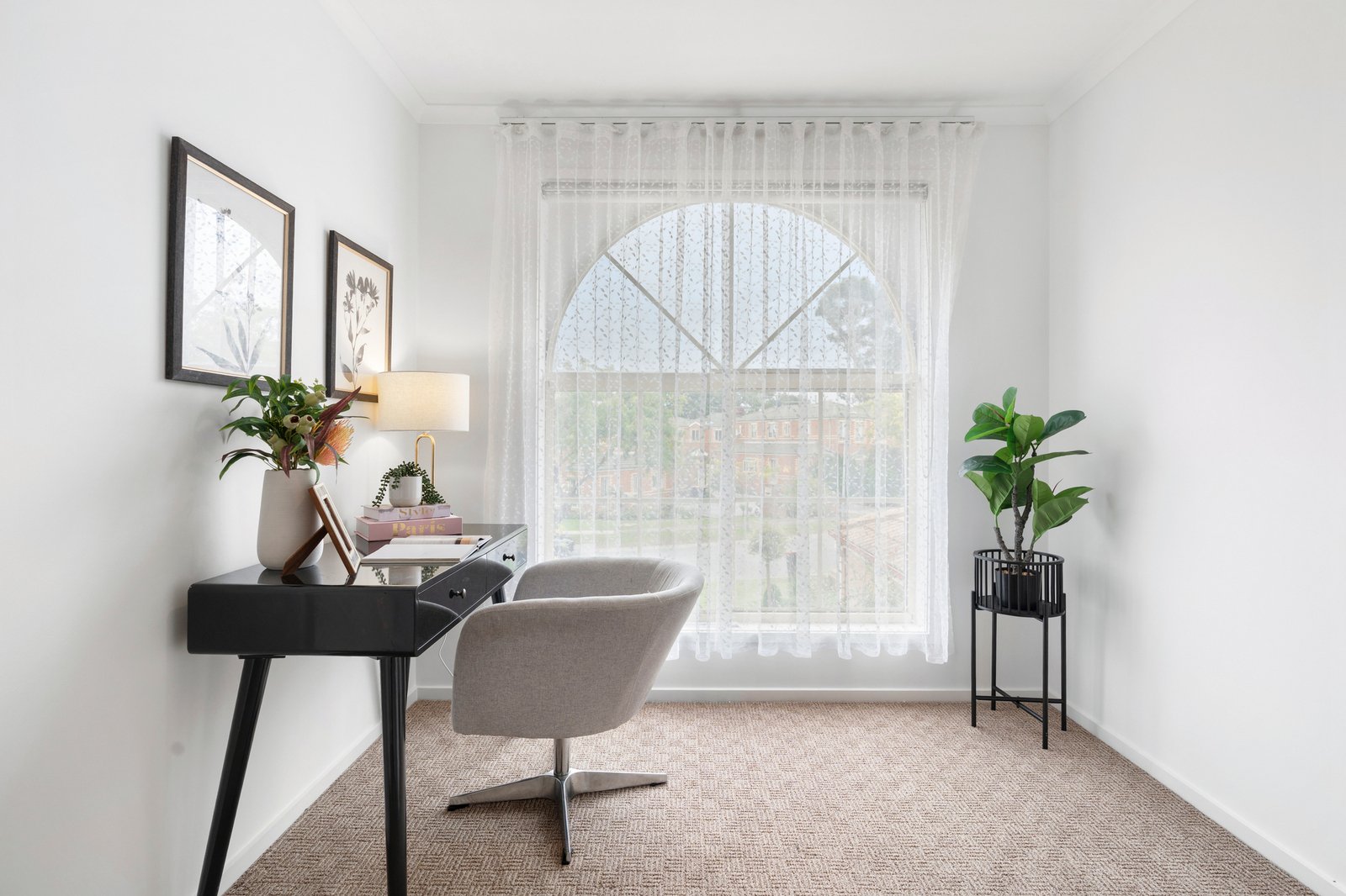 Upstairs, a sunny retreat and study nook next to the feature window enhance the options for student focus, remote working and relaxation when it’s time to switch off.