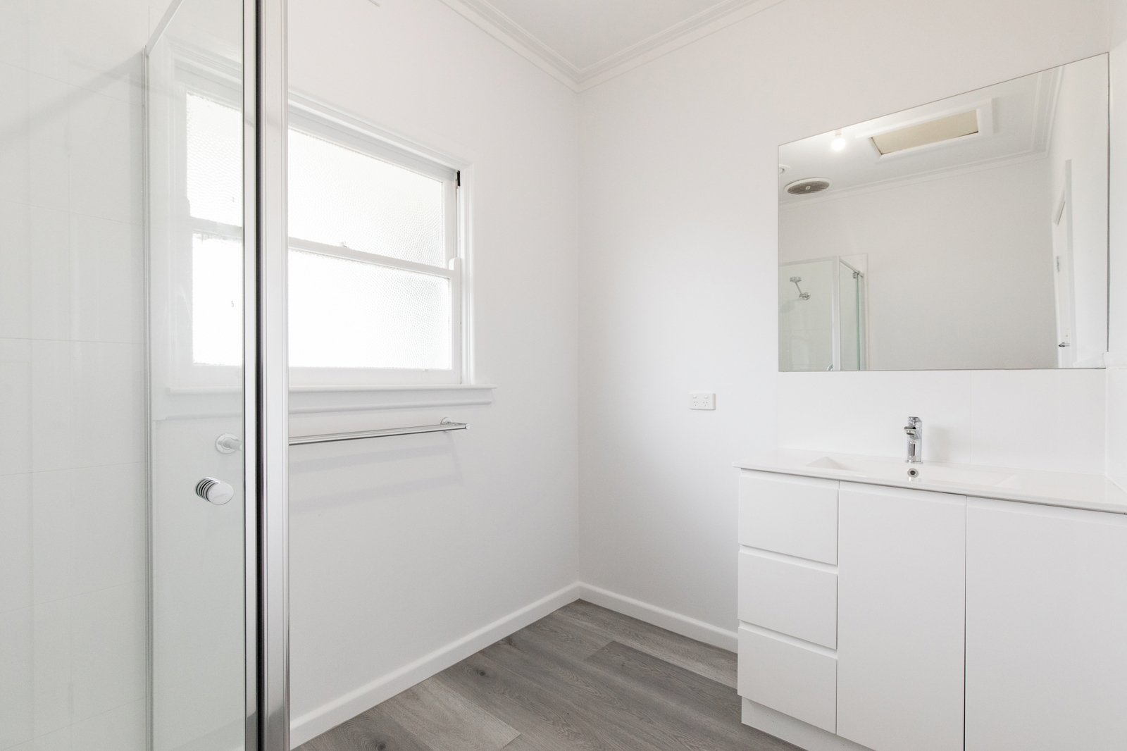- Main bathroom with shower and vanity