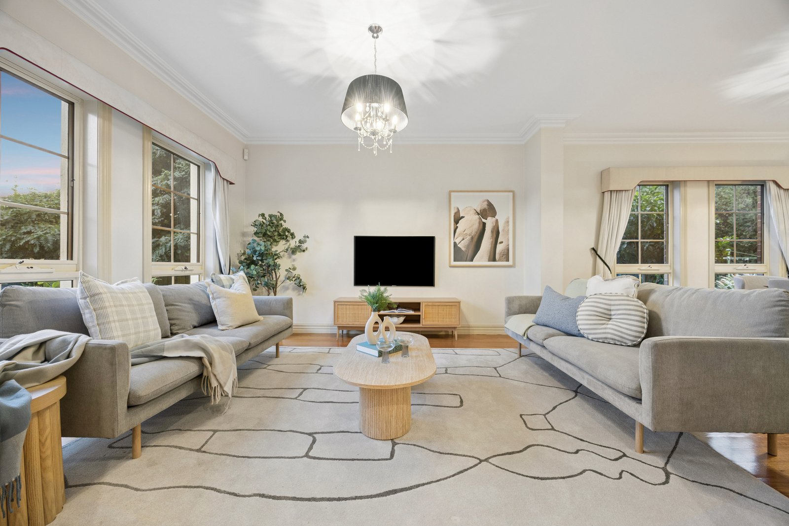 Timeless by design with a glossy granite and bespoke cabinetry kitchen featuring an integrated fridge-freezer and dishwasher, this substantial home adds to an entertaining life with big butler’s pantry, and makes living easy with an extra-large laundry - with chute and ironing area. Starring a majestic master-suite with a vast spa-ensuite hidden beyond the dressing-room, this gracious home has a clever two-way ensuite-bathroom for the secondary bedrooms, and endless storage including multiple walk-in robes and an understair area.