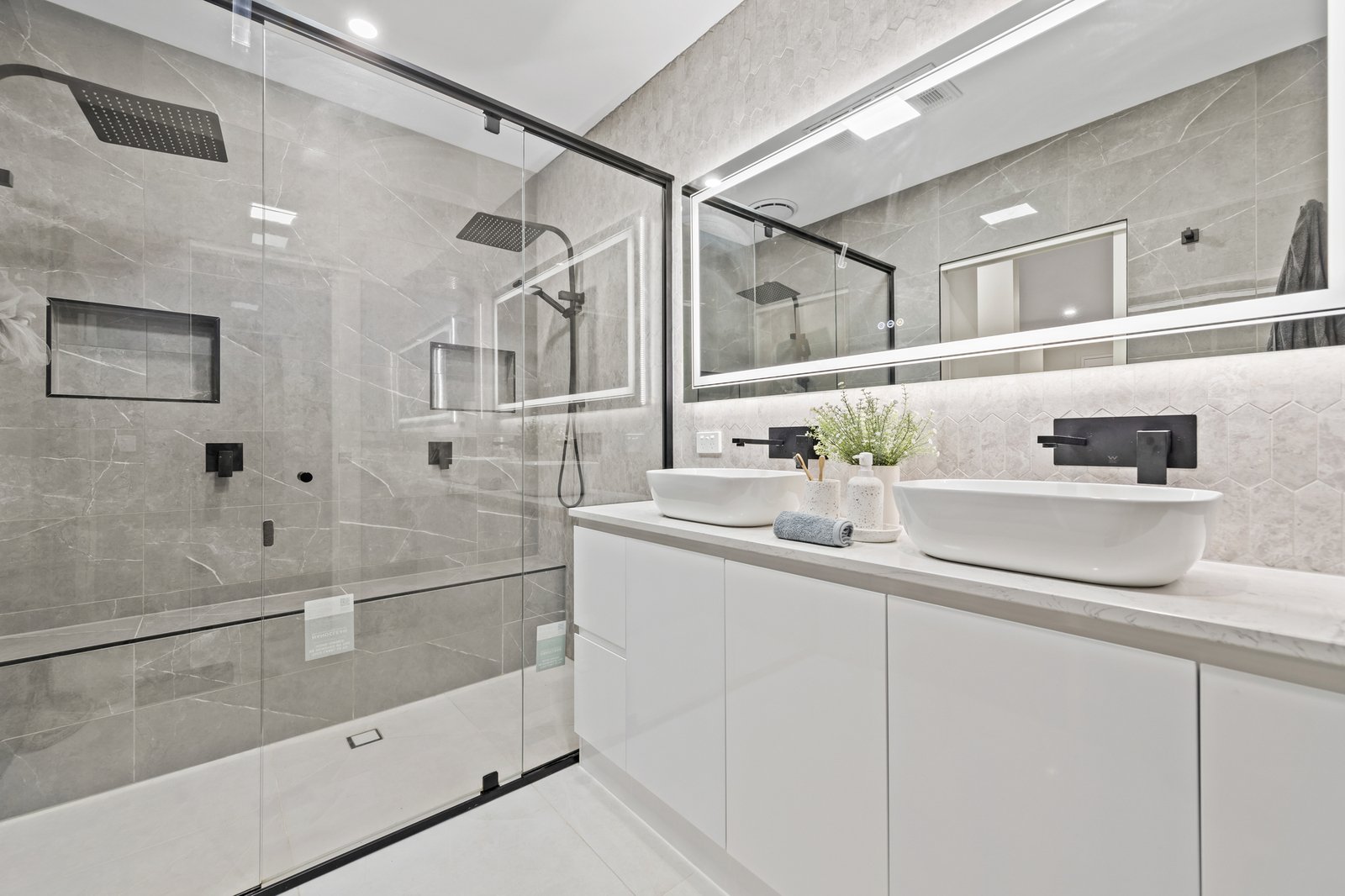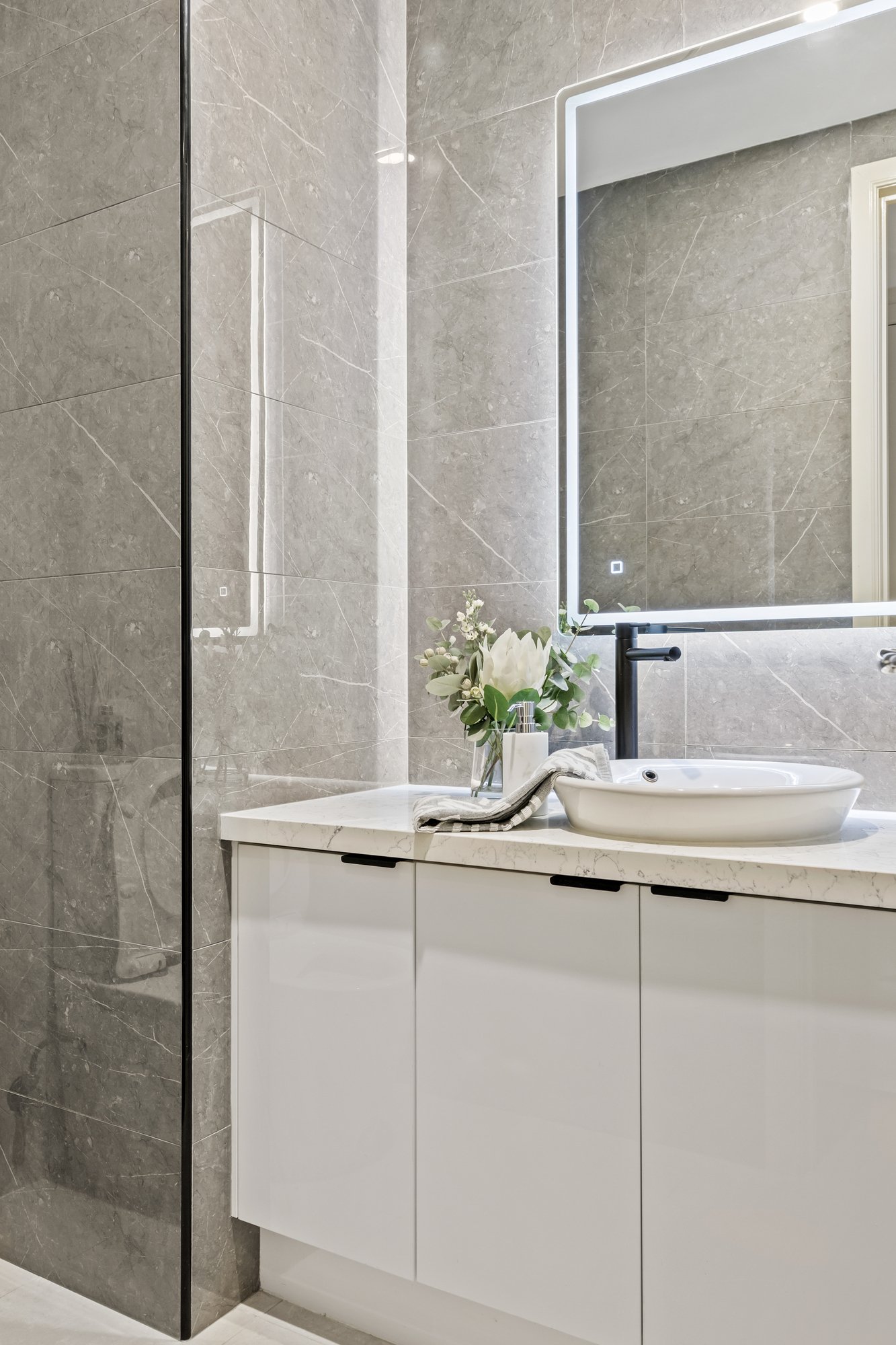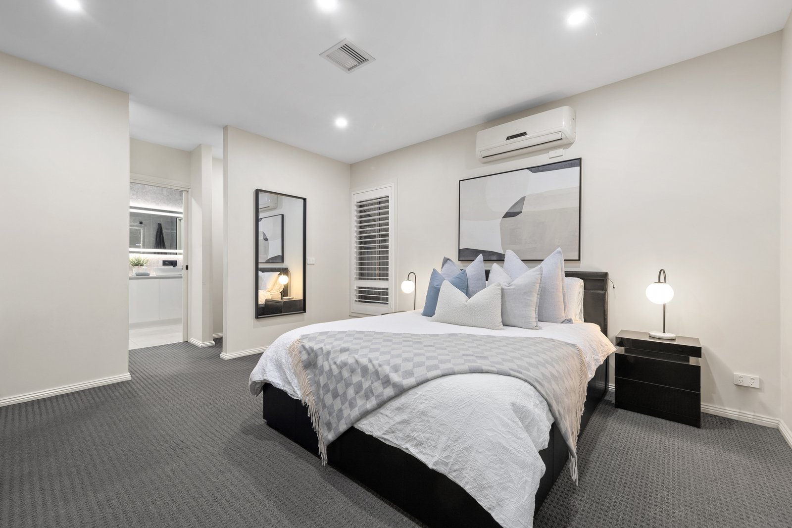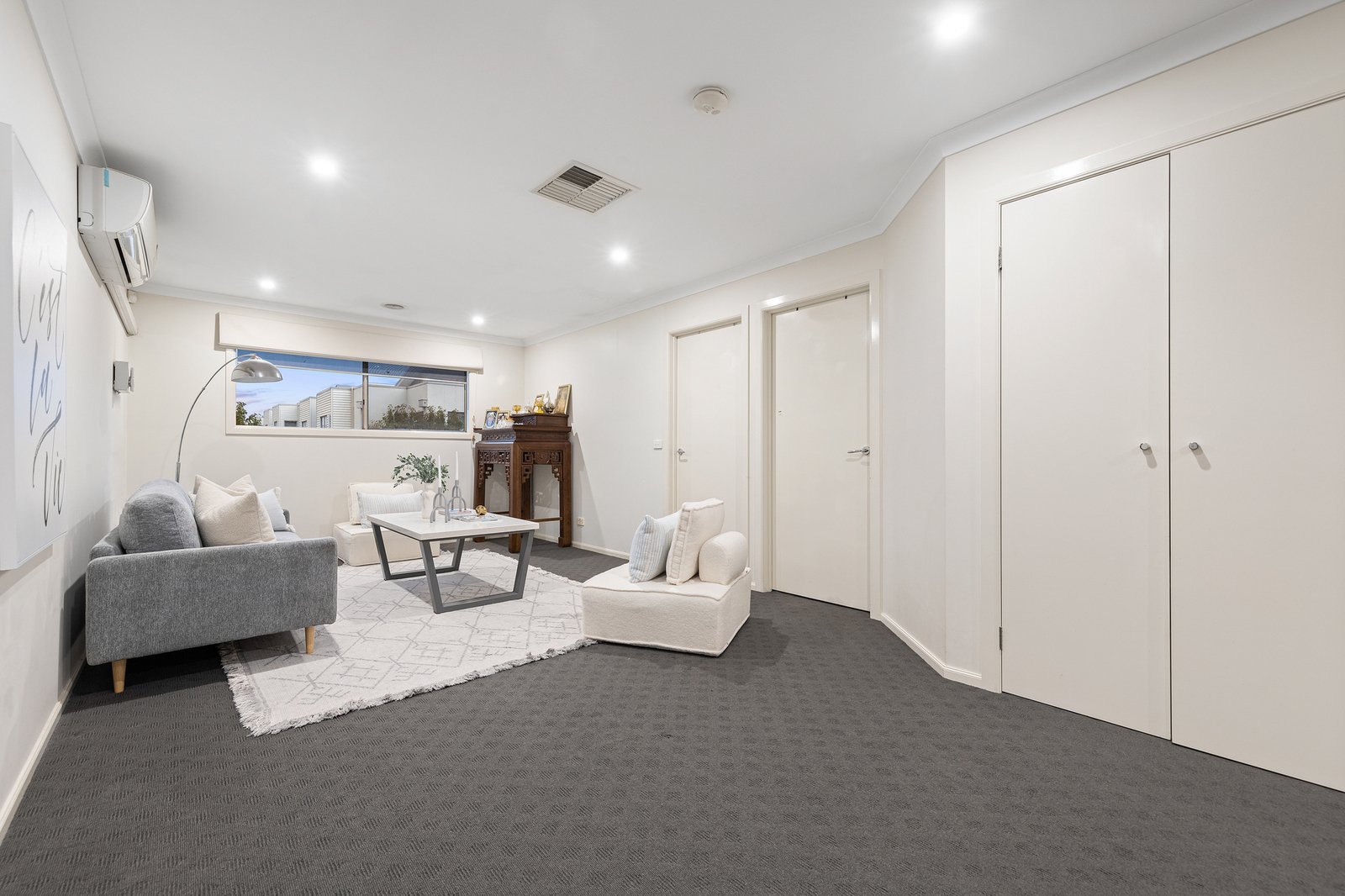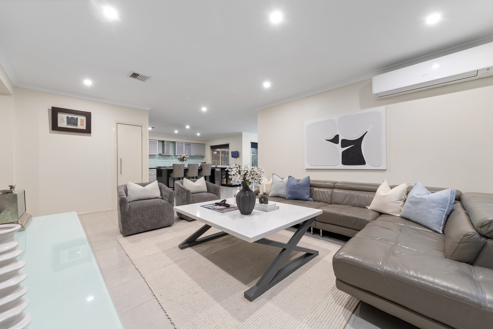 A formal living area sets the tone for refined entertaining, while the spacious kitchen impresses with quality appliances including a stove, oven, dishwasher and pantry. It flows effortlessly into the dining space, forming the central hub for everyday meals, family gatherings and relaxed socialising. Ideal for multigenerational living, the ground floor includes a bedroom with a walk in robe and ensuite, and a dedicated theatre room adds further flexibility for movie nights, kids’ play or a private retreat.