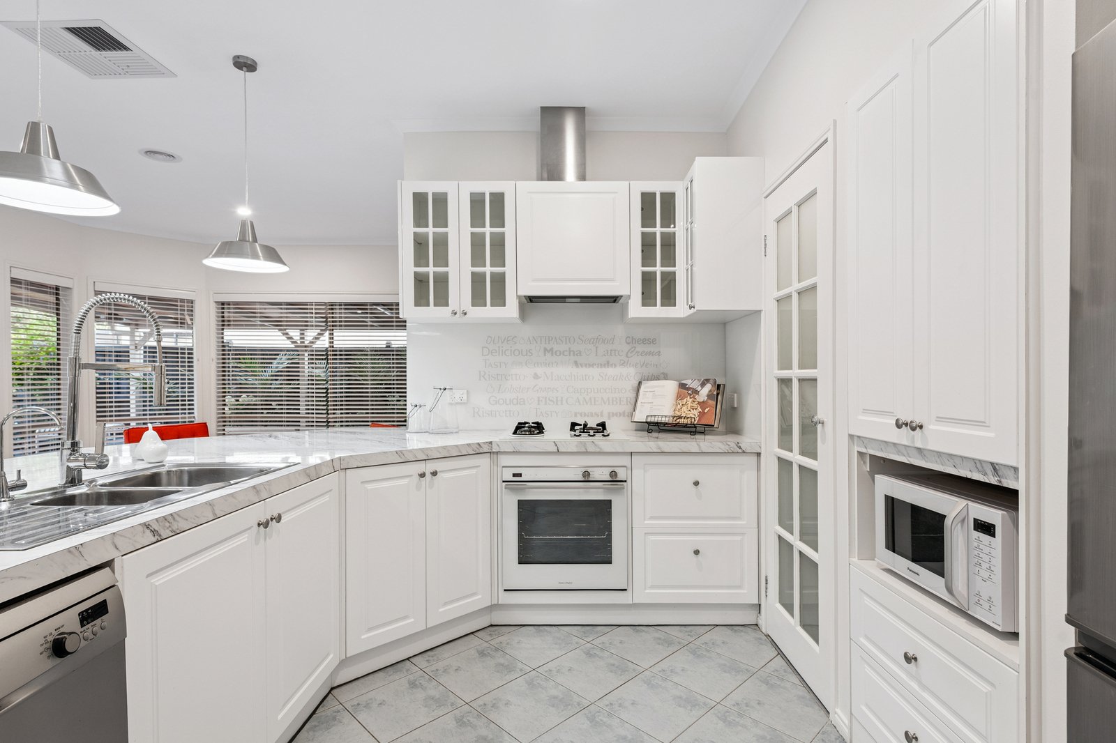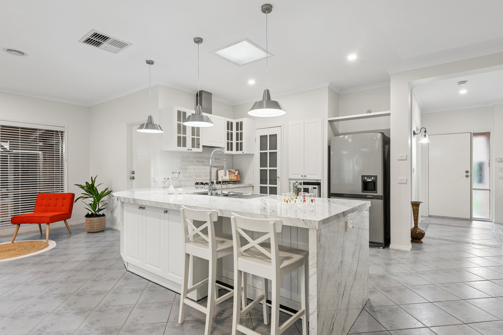 At the heart of the home, a skylit Shaker-style kitchen impresses with premium appliances and a walk-in pantry, combining classic design with modern functionality. Accommodation is equally refined, highlighted by a luxurious master suite featuring a dual-vanity ensuite as well as both walk-in and built-in robes. The remainder of the bedrooms are complemented by well-appointed robes and an oversized bathroom.