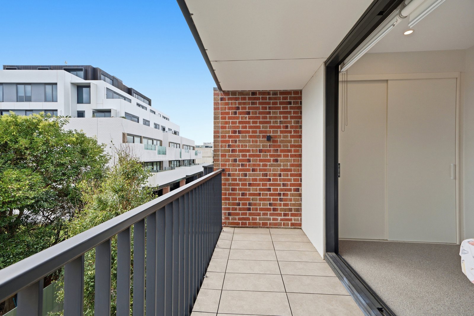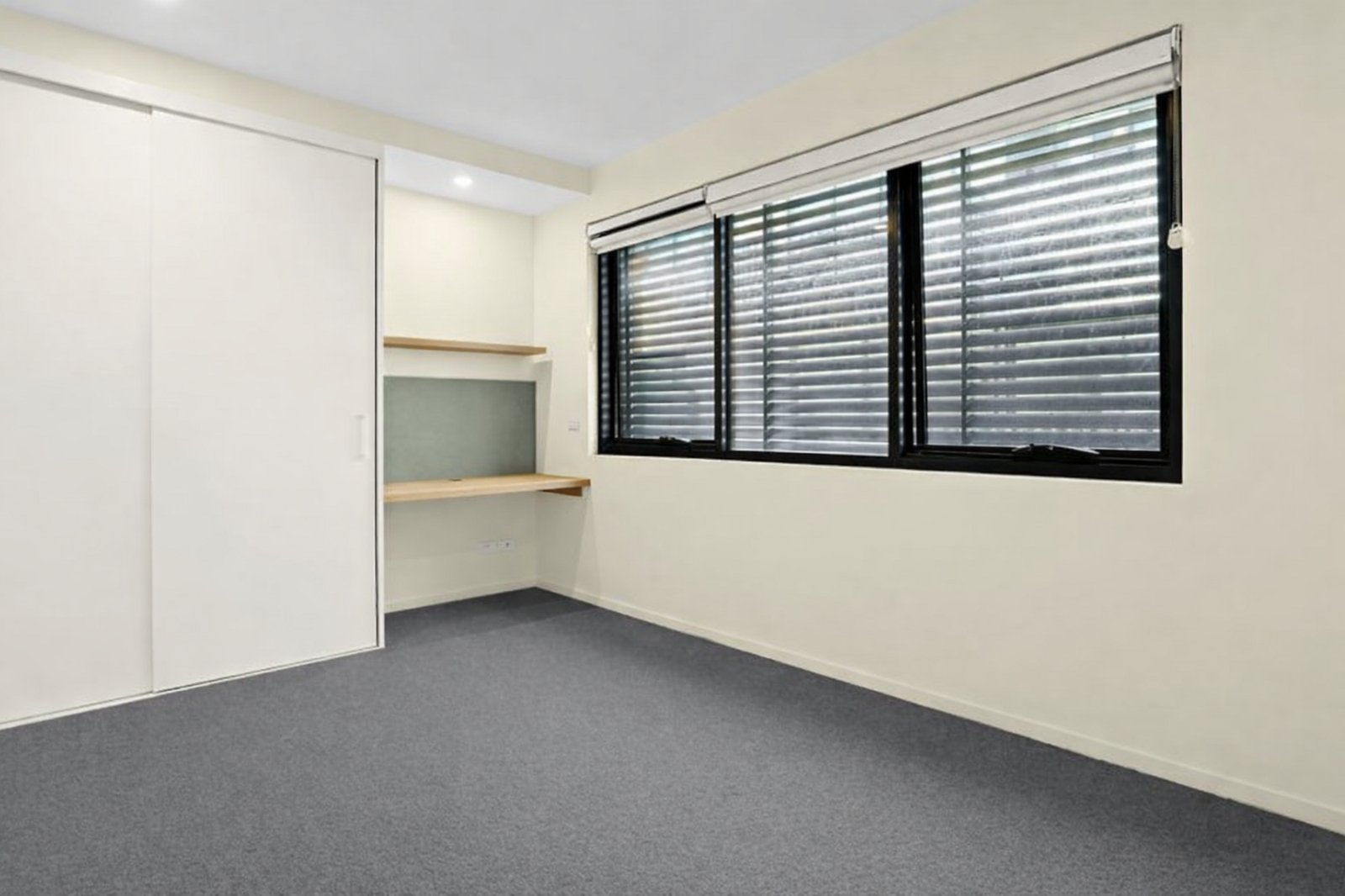 The first floor hosts two spacious bedrooms, both with built-in robes, including one with a dedicated study nook, serviced by a sleek central bathroom complete with bath and shower. Privately positioned, the top-level master retreat features dual built-in robes, a bright ensuite and access to its own well-sized balcony—creating the perfect space to unwind.