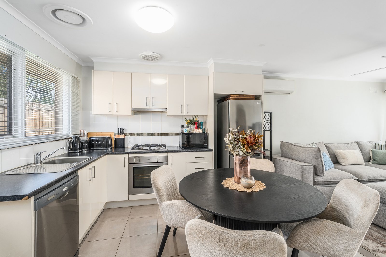 Thoughtfully designed, the home features an open-plan and highly functional living space, complete with a ceiling fan and an updated dining and kitchen area. The modern kitchen is equipped with stainless steel appliances, including a dishwasher, making everyday living both stylish and practical. Comfort is assured year-round with reverse cycle heating and cooling. The generously sized bedroom provides a relaxing retreat, enhanced by a ceiling fan and a mirrored built-in wardrobe. The bathroom is well-appointed, featuring a separate toilet and integrated laundry for added convenience. Step outside to enjoy a secure backyard and spacious entertaining space. Externally, the property offers a carport conveniently adjoined to the unit, and the added benefit of a bonus storage facility.