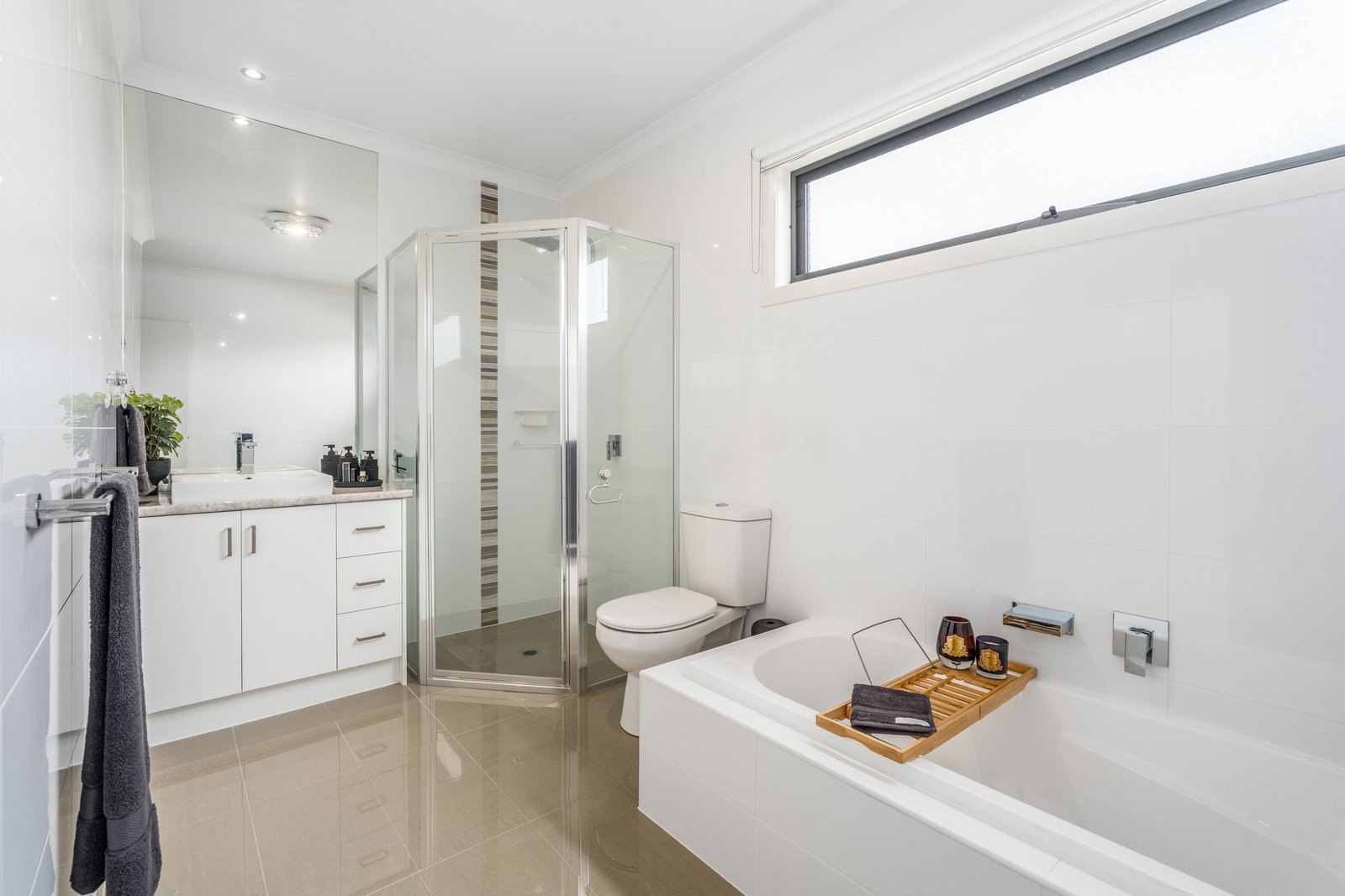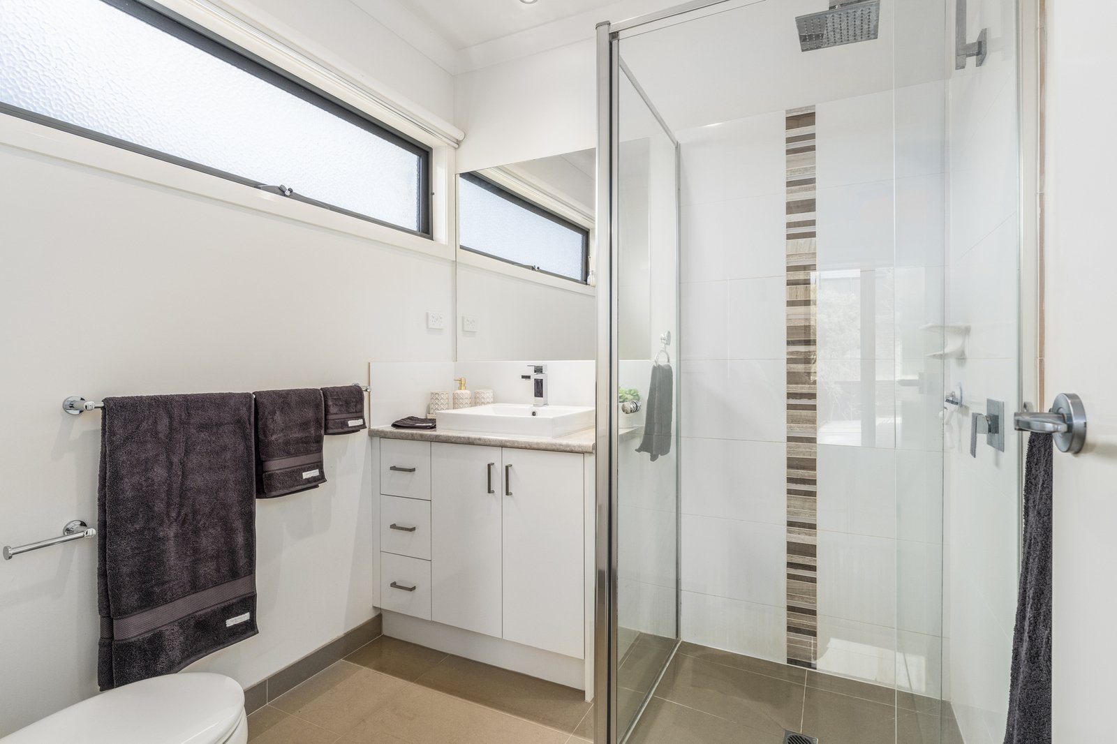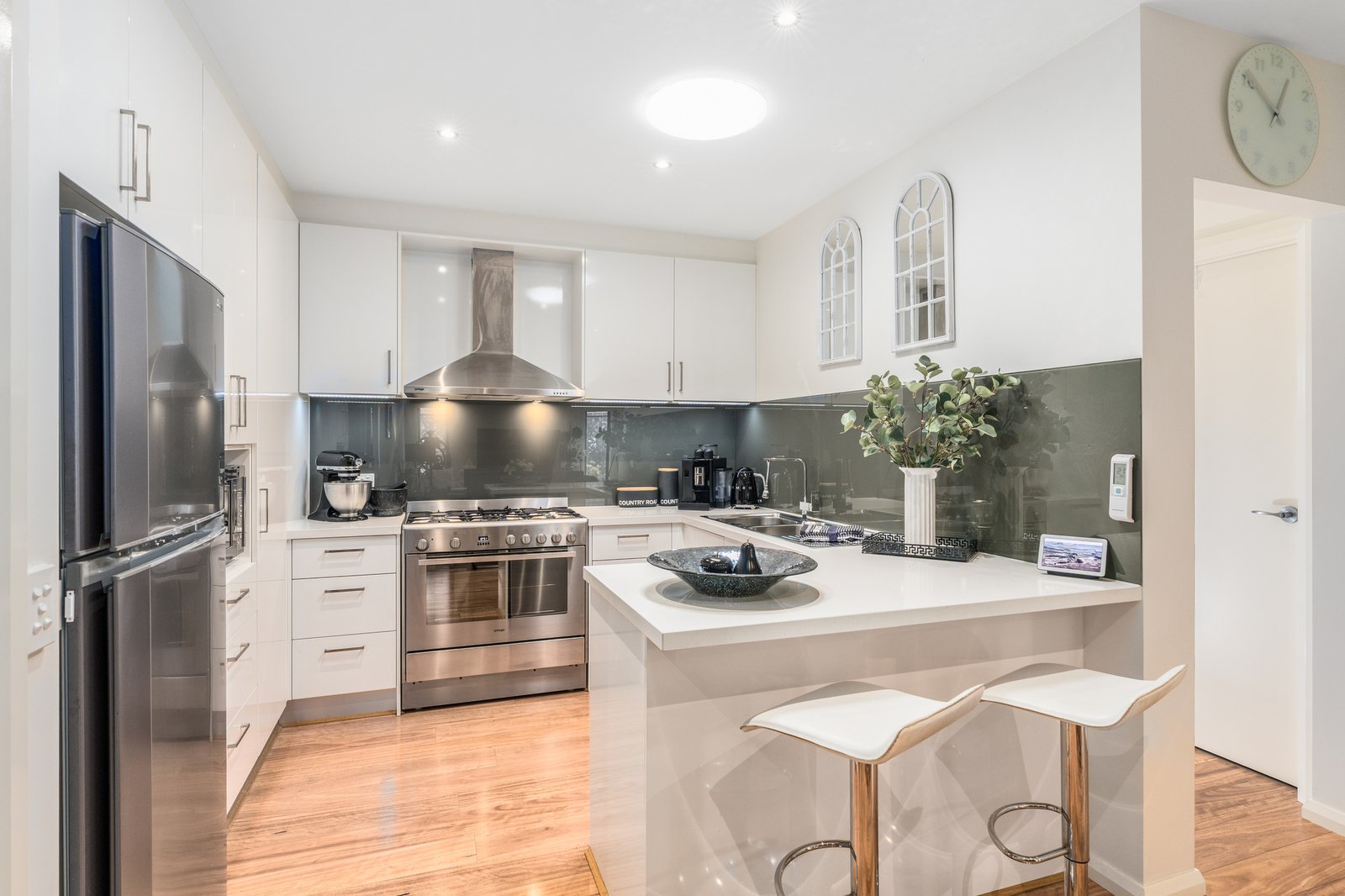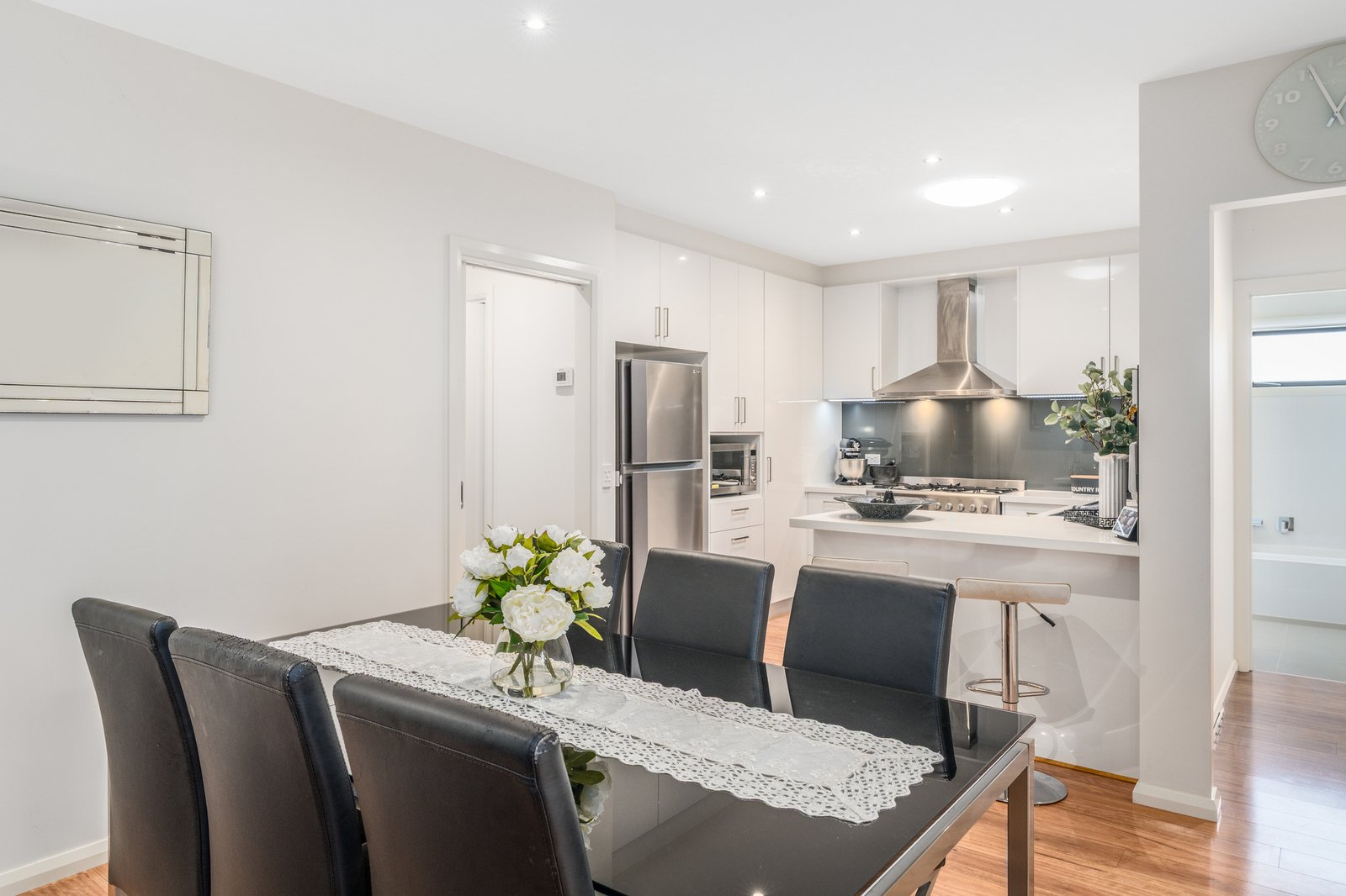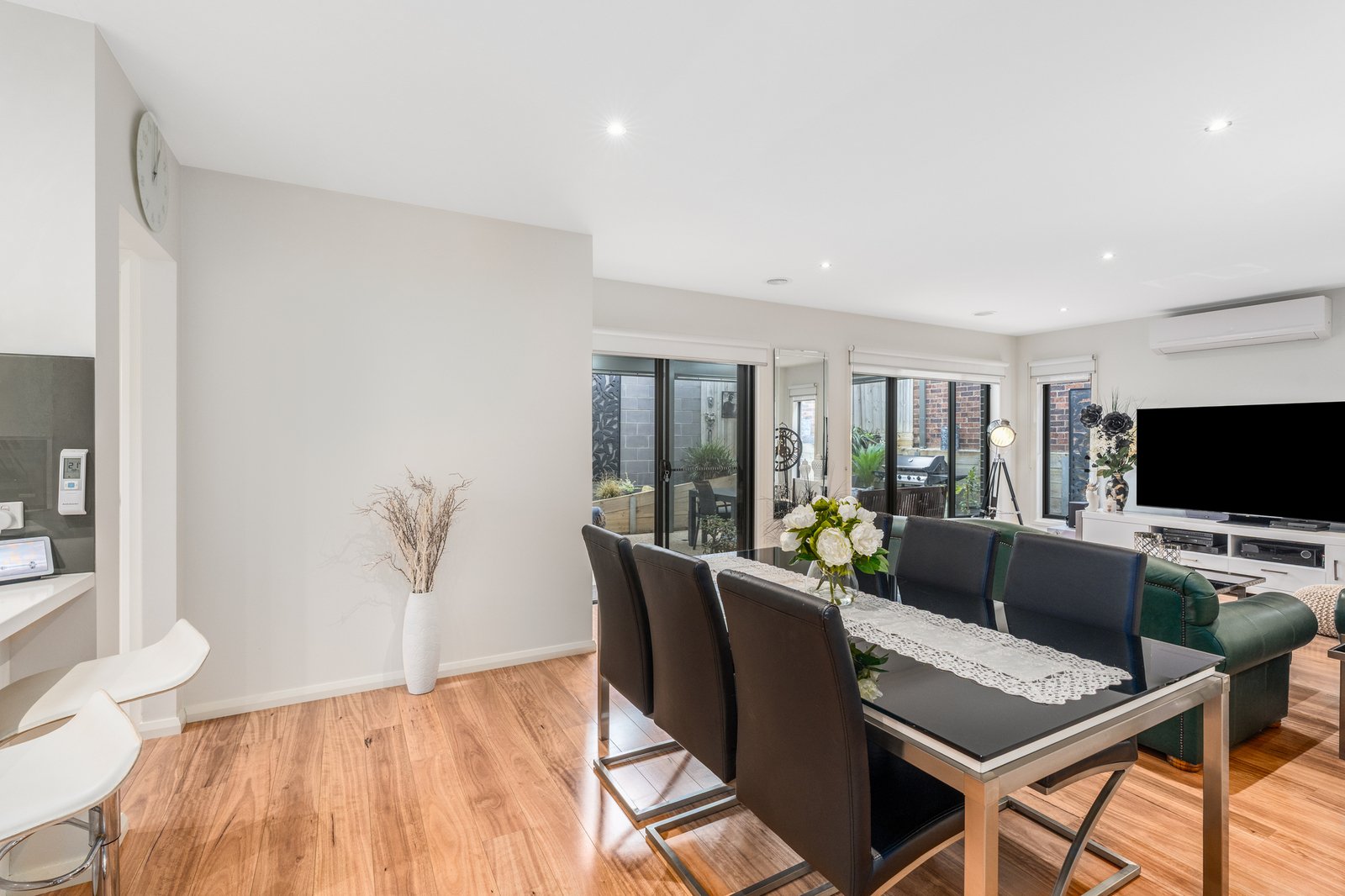 Inside, laminate timber floors and clean lines set the tone. The well designed floor plan includes a front master bedroom with walk in robe and ensuite, plus two additional bedrooms with built-in robes, serviced by a sleek oversized central bathroom.