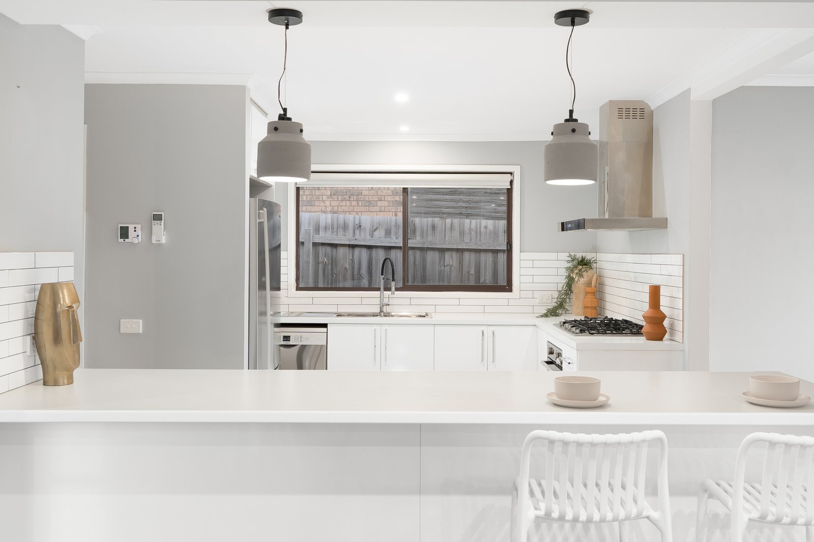 The home comprises of three bedrooms with built-in robes, serviced by a beautiful central bathroom. The master is complimented with its own ensuite and generous built in robes. The heart of the home is the light-filled open plan kitchen, dining, and living area. The expansive kitchen boasts ample bench space with a large island, quality appliances and visibility into the backyard whilst the kids are running around. Sliding doors open to the picture-perfect alfresco area, creating seamless indoor-outdoor living and entertaining friends and family all year round.