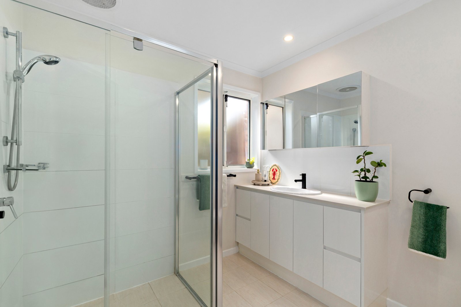 Both generously sized bedrooms feature built-in robes, ceiling fans; complemented by a contemporary bathroom with large walk-in shower and skylight.