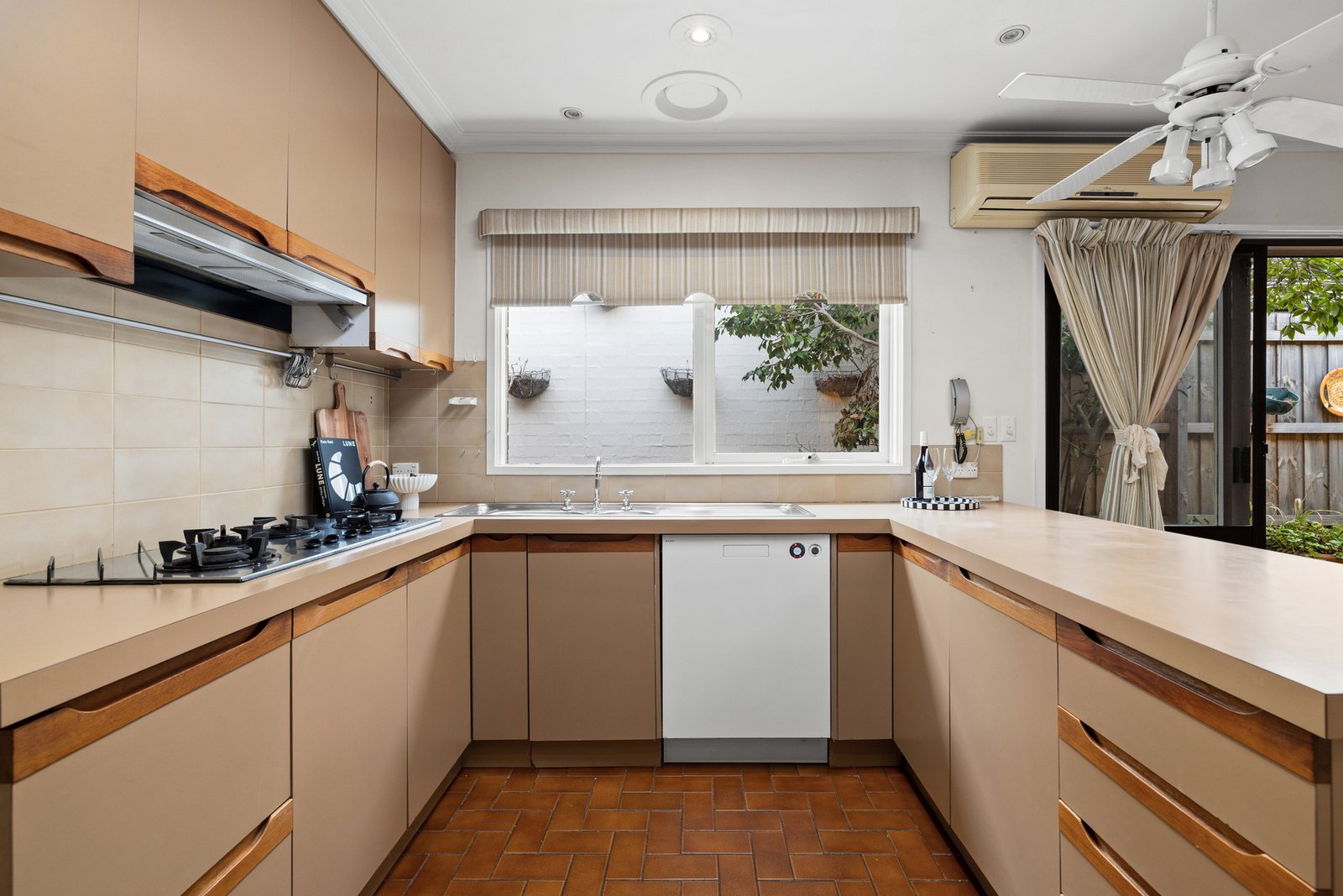 Perfectly private, the flowing floorplan features an expansive living/dining zone boasting contemporary carpet and extending to the practical kitchen and an inviting family area accented by a wall of mid-century joinery. Outside, the alfresco patio is a peaceful setting that is protected from the weather, while around the corner in a garden hideaway, a workshop/studio is ready to adapt to your needs.