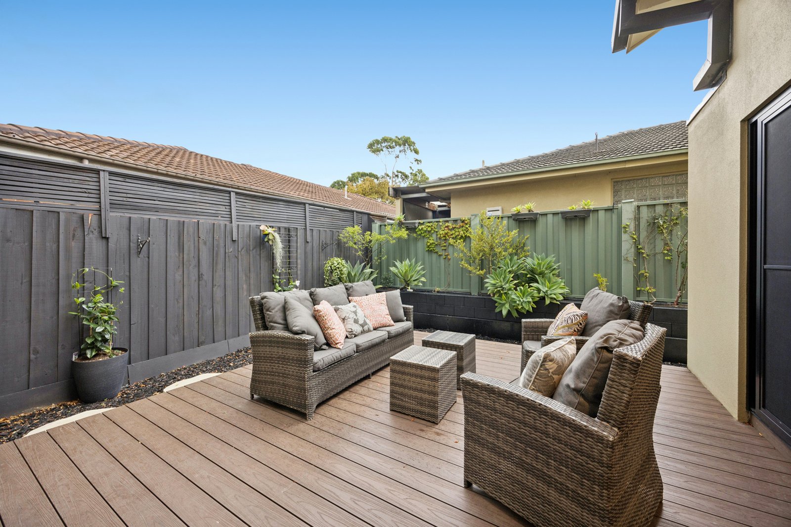 A standout feature of the home is the expansive outdoor decking area—ideal for hosting guests or enjoying relaxed evenings in a private, low-maintenance setting.