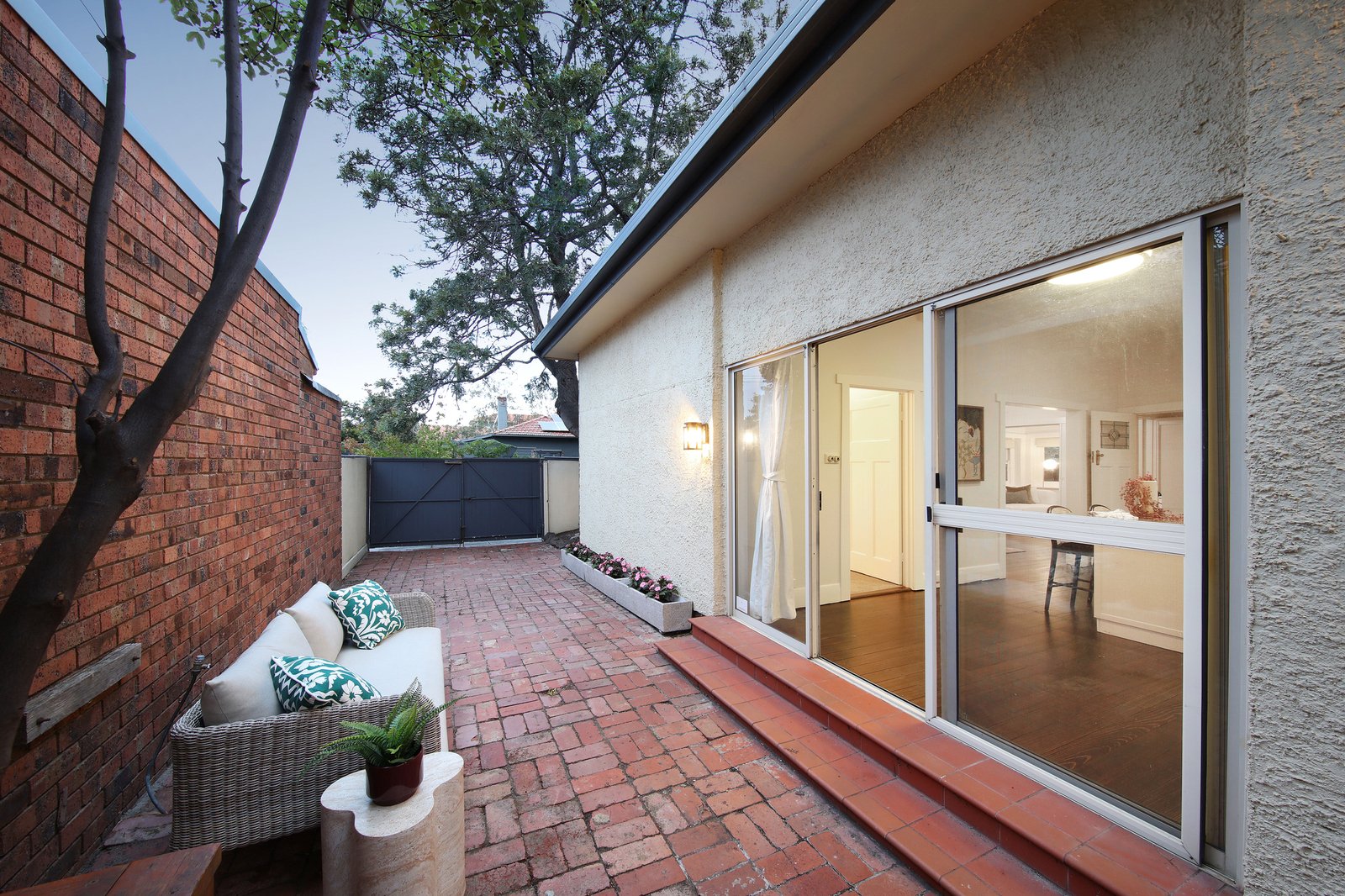 Step behind these high garden walls into a world of period beauty and perfectly easy living. The original grandly gracious home on this now-subdivided corner block, this three bedroom, two bathroom Californian Bungalow is reimagined for today’s single-level lifestyle with beautiful separate lounge and dining rooms plus a sun-filled kitchen dining or casual area opening to paved entertaining in private, landscaped gardens designed for effortless enjoyment.