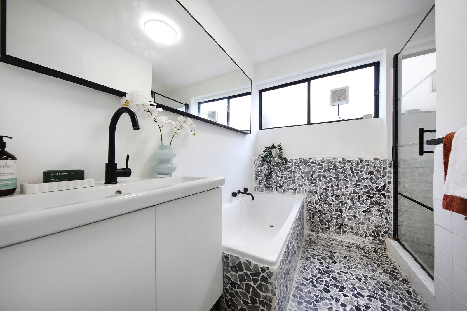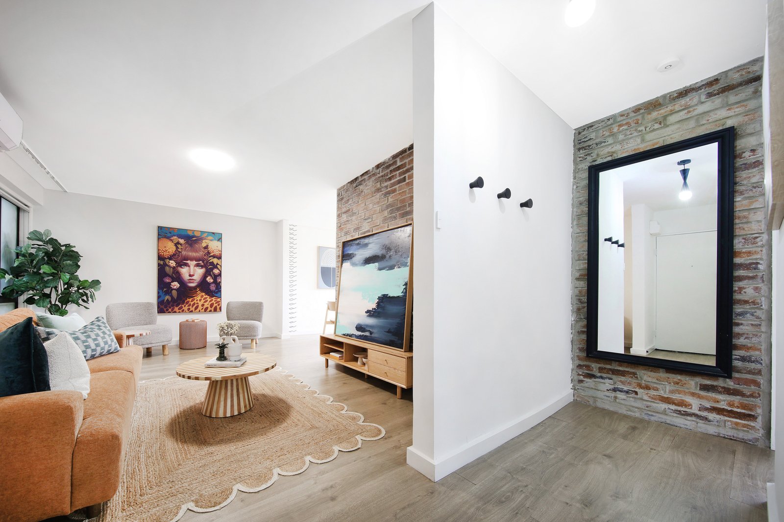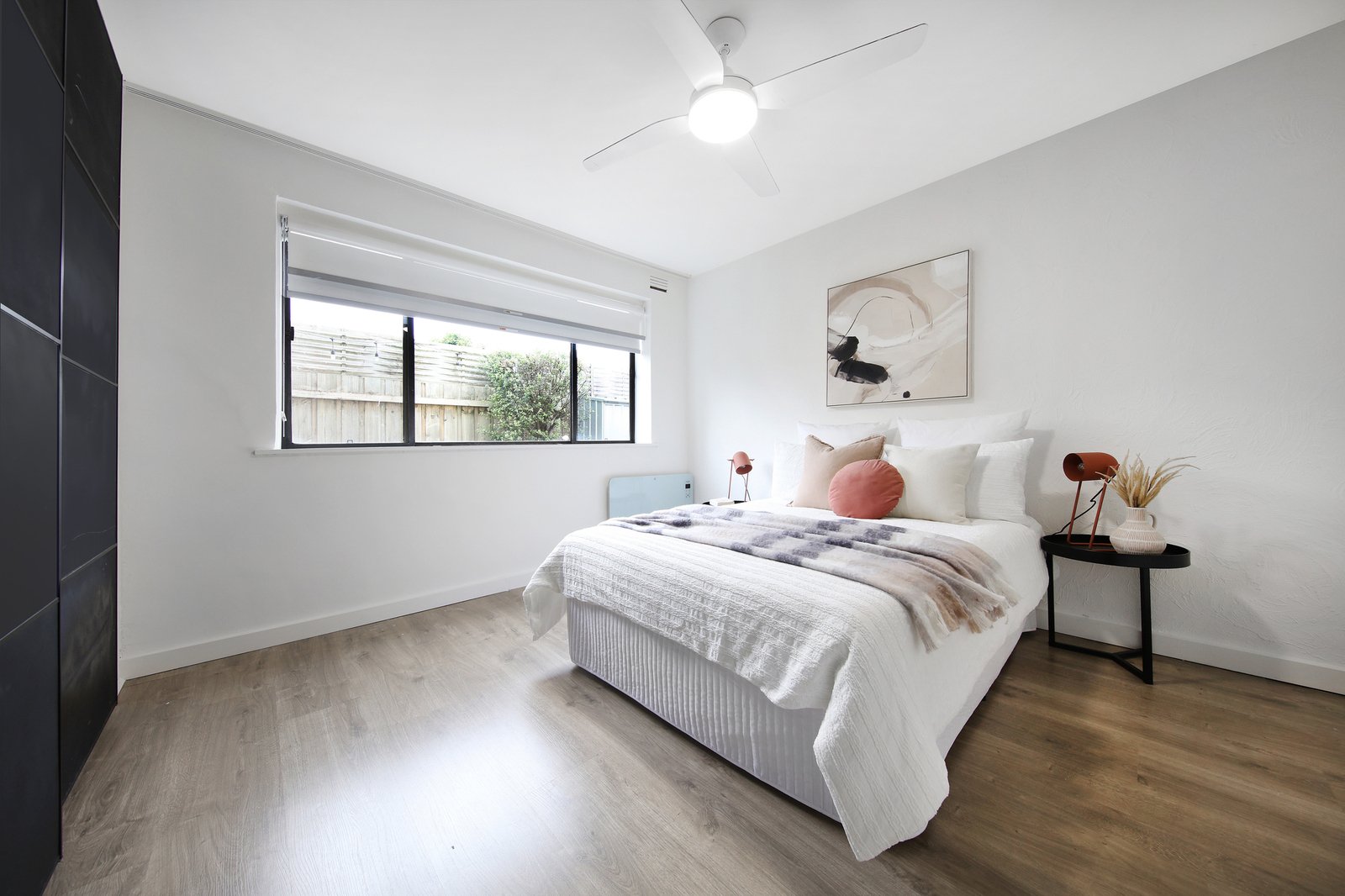 Detailed with an eye to designer finishes with wideboard-style floors, matte black tapware and hardware, and feature exposed-brick walls against a backdrop of a sparkling all-white paint scheme, there’s added attention to detail at every turn; from upgraded black-framed windows throughout to dual day-night blinds. There's even value-add appointments to make life extra comfortable including reverse-cycle air-conditioning supplemented by wall heating, intercom security enhanced by keyless locking on all external doors & parking out front.
