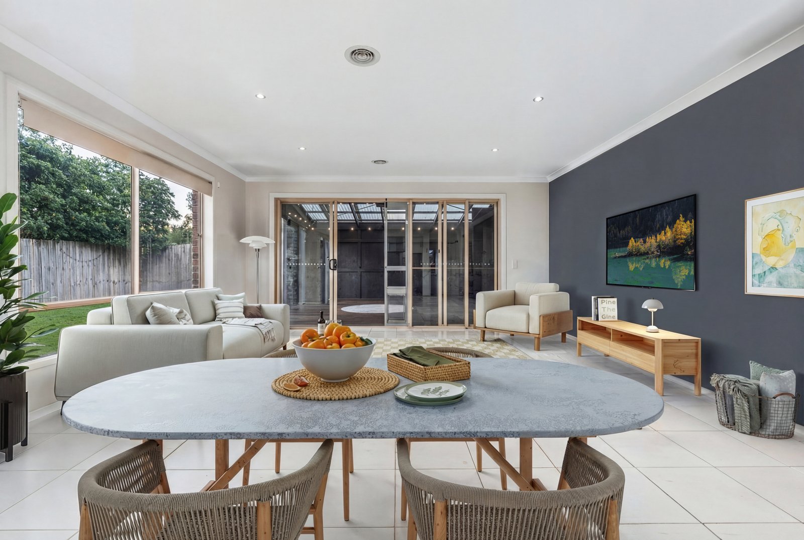 At the heart of the home is the expansive open-plan kitchen, dining and family area, designed to bring everyone together. Generous in size and functionality, this central hub seamlessly connects everyday living with entertaining. The kitchen is thoughtfully laid out with ample bench space, quality appliances and great storage, making it perfect for both casual meals and hosting guests. Sliding doors extend the living space outdoors to the impressive undercover alfresco area, creating a seamless indoor-outdoor connection ideal for relaxed weekend gatherings or summer barbecues complete with a wood fire. The spacious backyard offers plenty of room for kids and pets to enjoy, while side access with dedicated caravan or boat parking adds an extra layer of practicality.