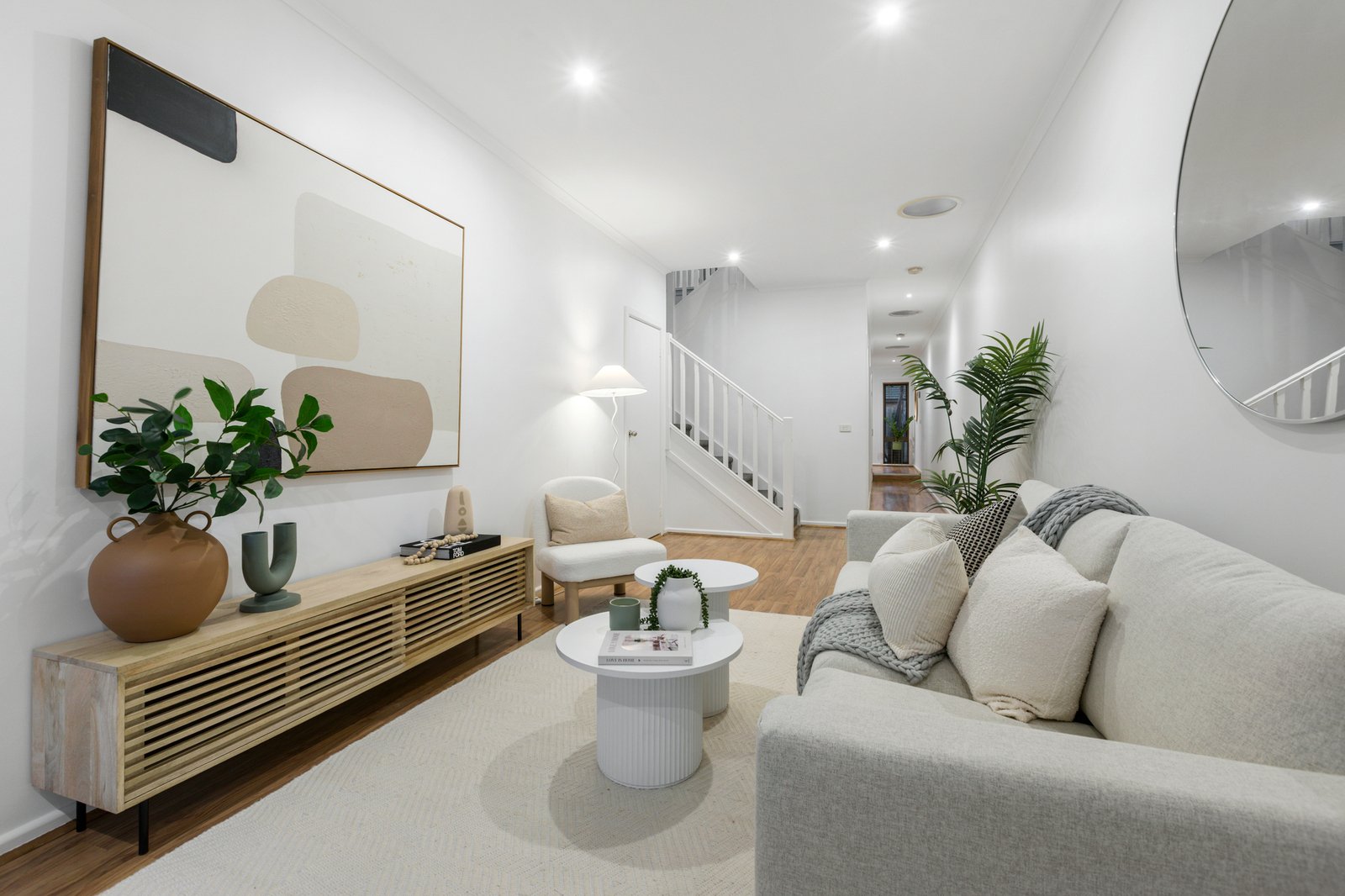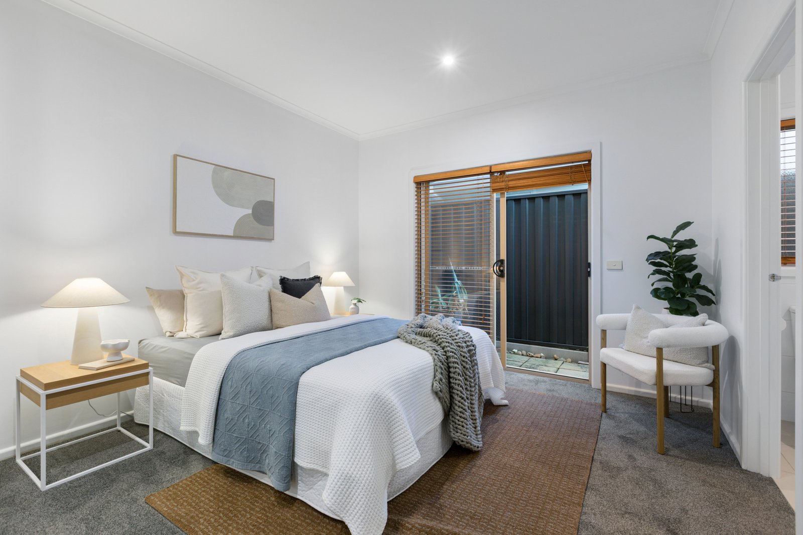 The inclusion of a ground floor main bedroom with ensuite and built-in and walk-in wardrobing widens the appeal to downsizers, whilst families will love the versatile garage conversion that could be an extra bedroom, home office or gym as needed. Upstairs plays host to two further bedrooms with fitted robes sharing the bright bathroom with twin vanity – also on this level is a additional living retreat perfect for a study, TV room or quiet escape