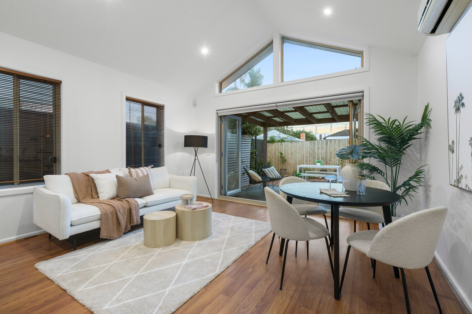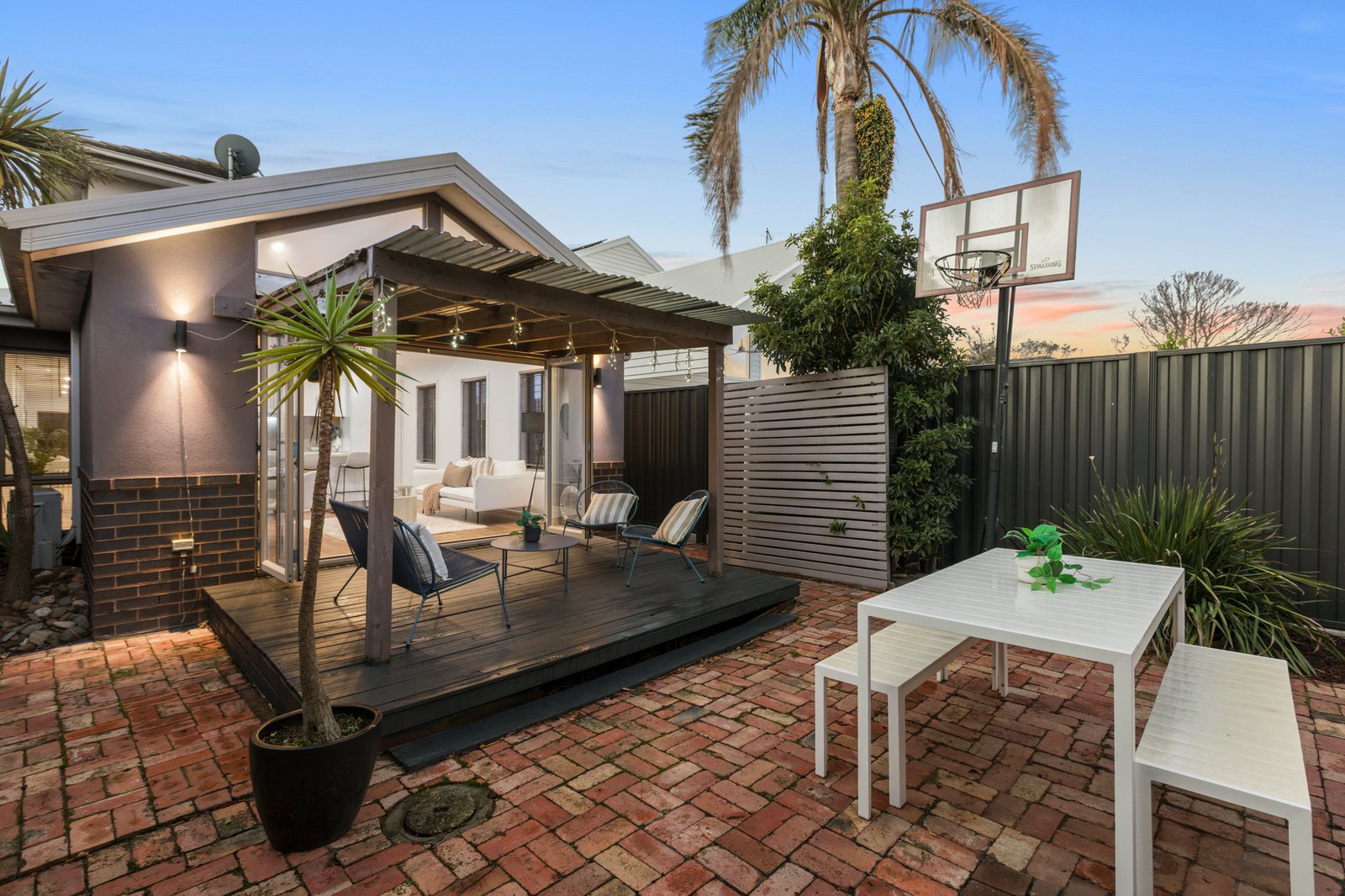 This street-front home opens to the first of a choice of living areas, then flows through to the main entertaining zone. Set beneath a glorious, pitched ceiling and seamlessly connected with the contemporary kitchen which is sleek and functional, complete with stainless steel appliances, this space spills out to the sheltered alfresco deck and low maintenance garden beyond.