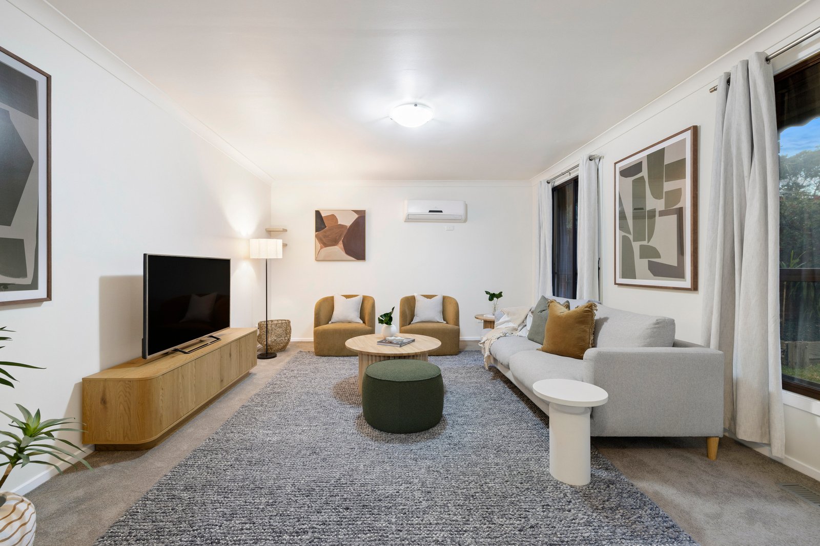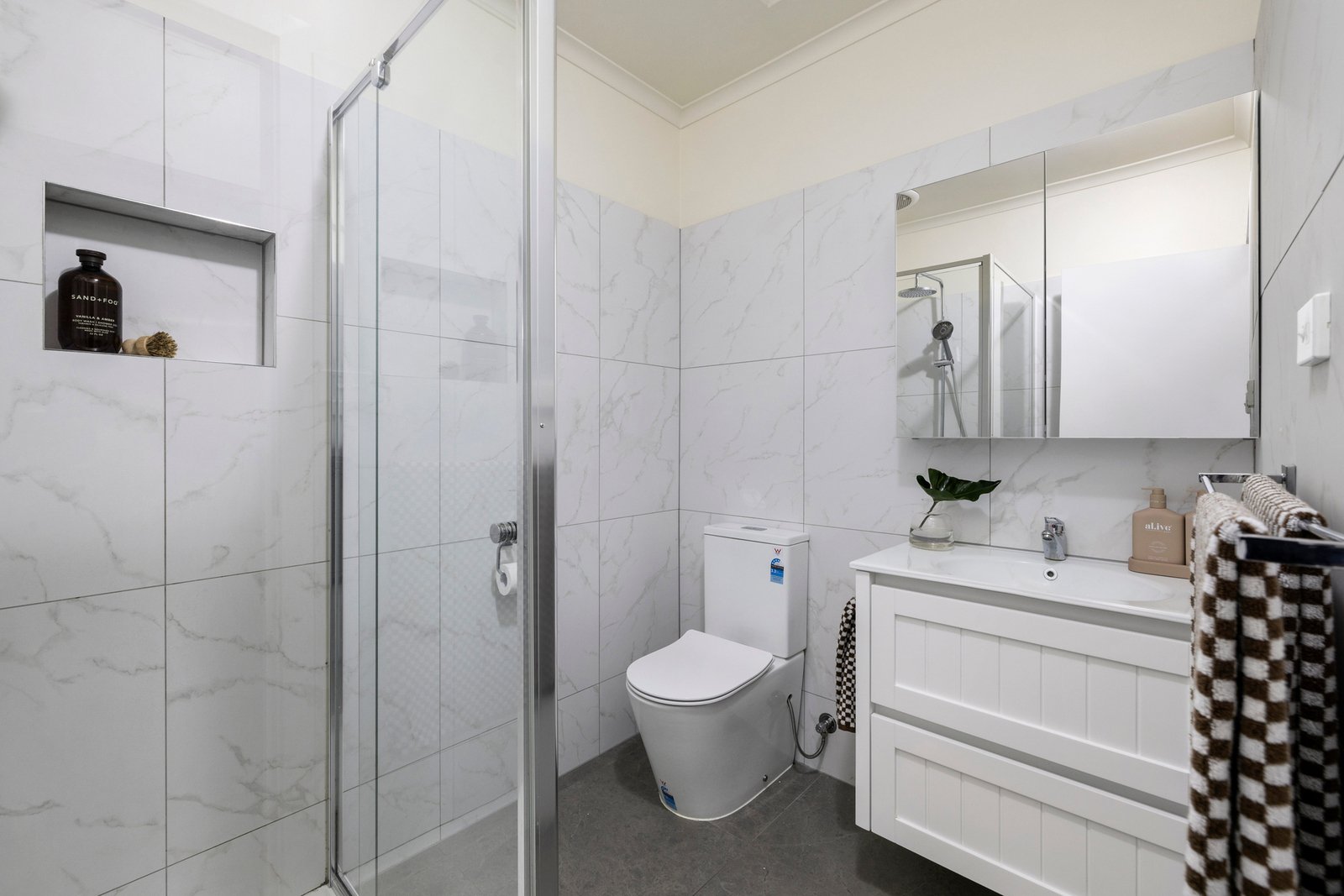 Three generously sized bedrooms, each with split system, ceiling fan and built-in wardrobes, share a stylishly renovated skylit bathroom which includes a drenching rain shower, floating vanity and mirrored storage. A modernised laundry with generous storage, separate WC, double glazed windows & ducted heating are all highlights of the home, including a gated & private front garden and a rear decked courtyard with sunny clothes-drying area. A lock-up garage, carport and open-air parking space seal the deal.