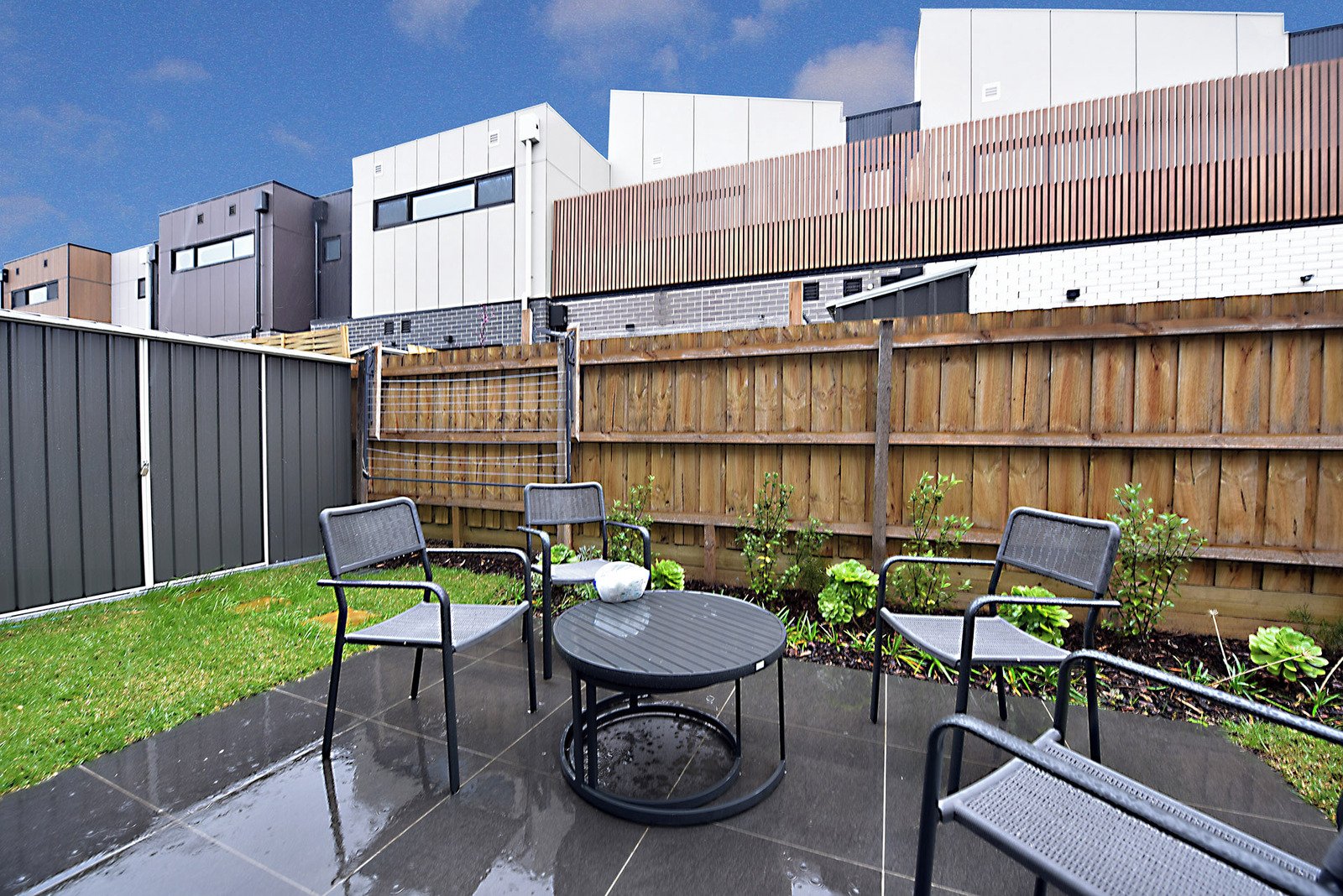 • Low maintenance courtyard with garden shed