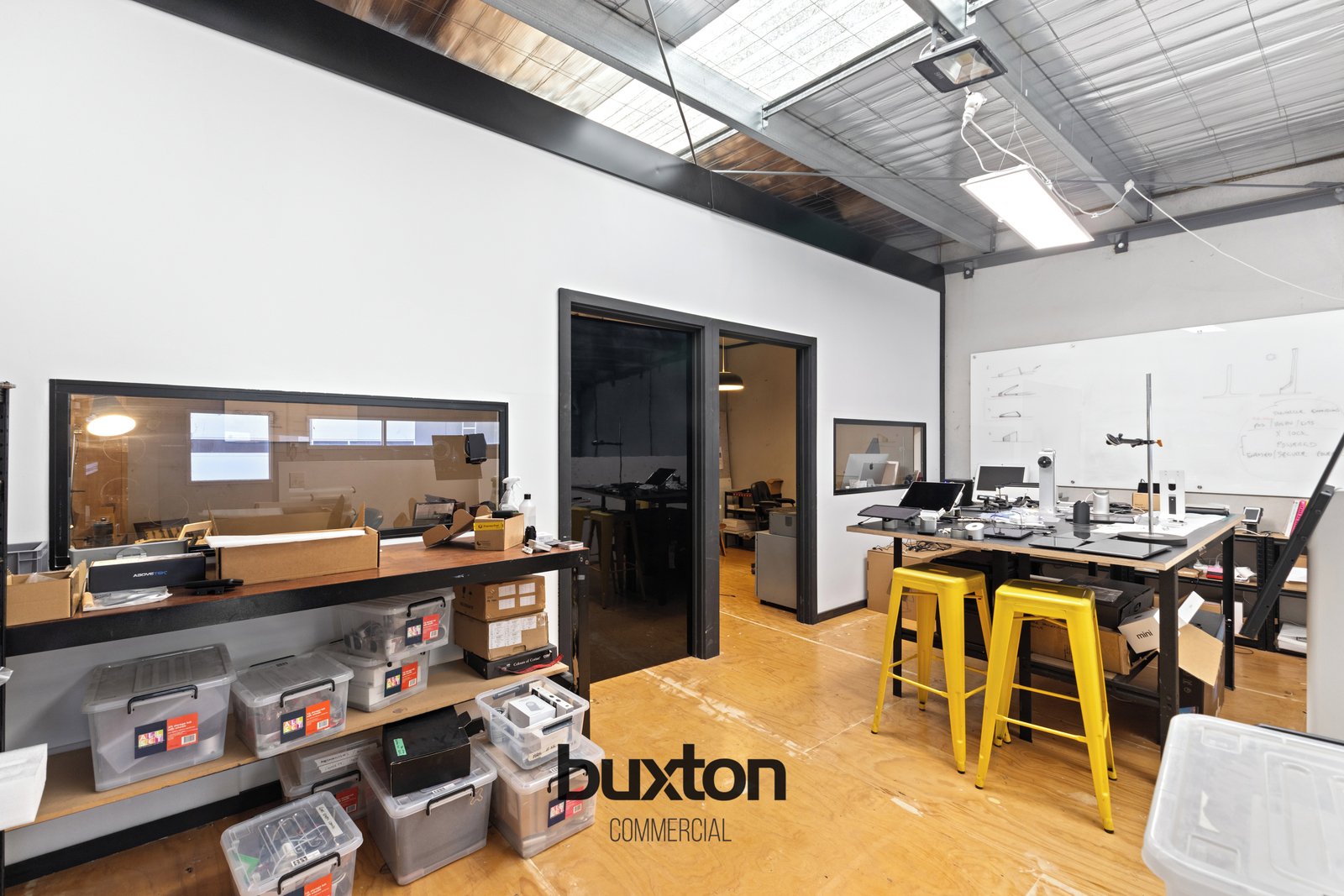 Offering a total building area of 110m2 (approx.), including a well-appointed mezzanine level, the property provides an efficient layout combining warehouse functionality with dedicated office accommodation.