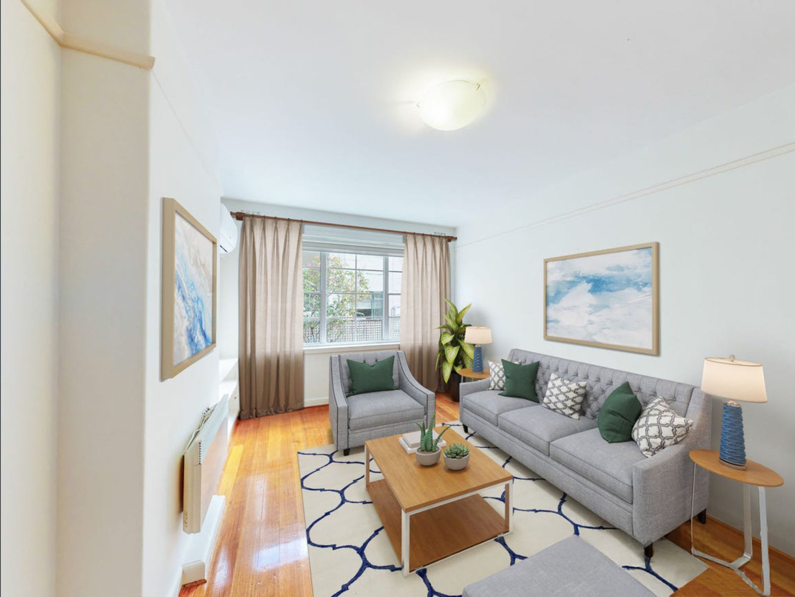 A well-presented ground floor apartment in a boutique block of just 12, offering light-filled open-plan living and a peaceful leafy outlook. The home features a modern kitchen with gas cooking and ample storage, polished floorboards through the living zone, and two generously sized bedrooms with built-in robes, serviced by a recently renovated central bathroom.