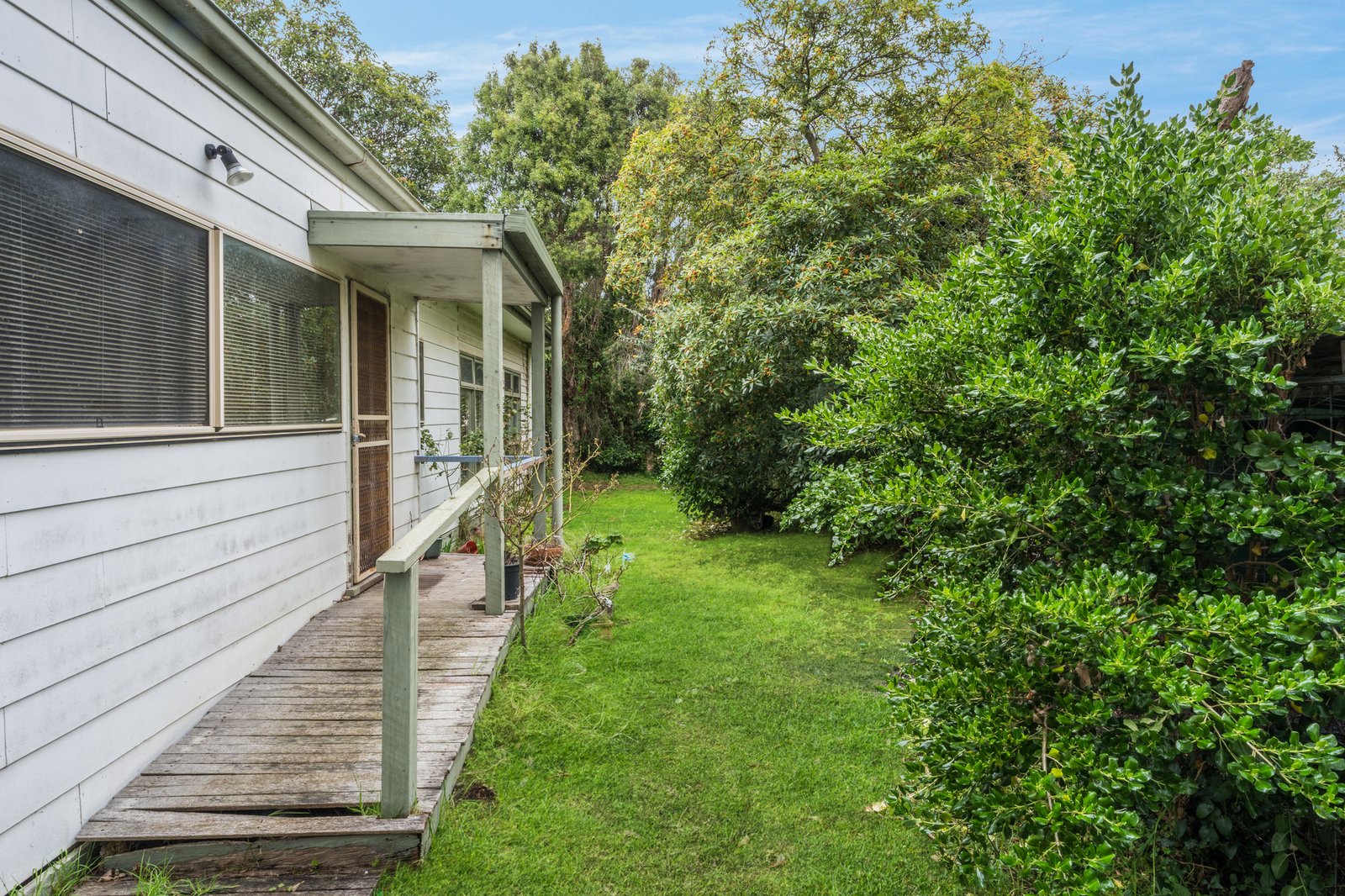 Surrounded by established greenery, the existing three-bedroom home provides a basic foundation, featuring a central bathroom, separate WC, light-filled living area, adjoining dining space and kitchen, along with a laundry, decked outdoor area and single garage. While comfortable in its current form, the true value lies in the possibilities the site presents.