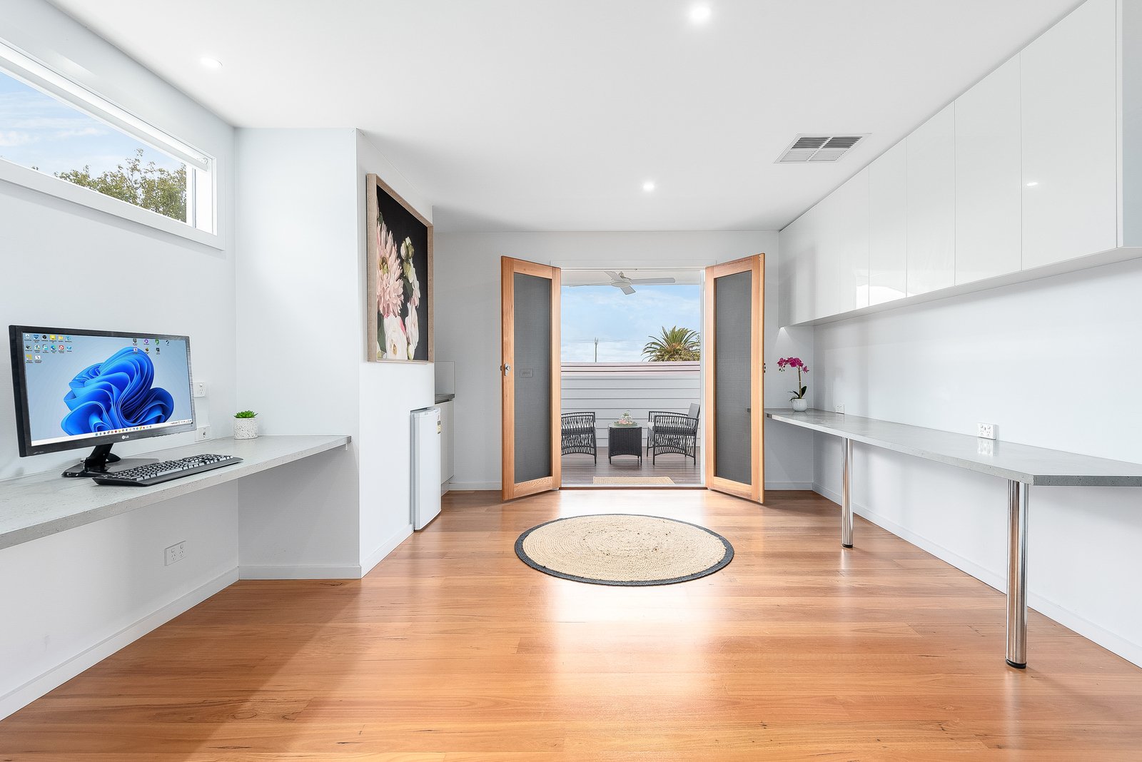 Adjacent to the main living zone, a versatile salon or studio space complete with the European laundry adds further flexibility, ideal for those working from home or running a small business.